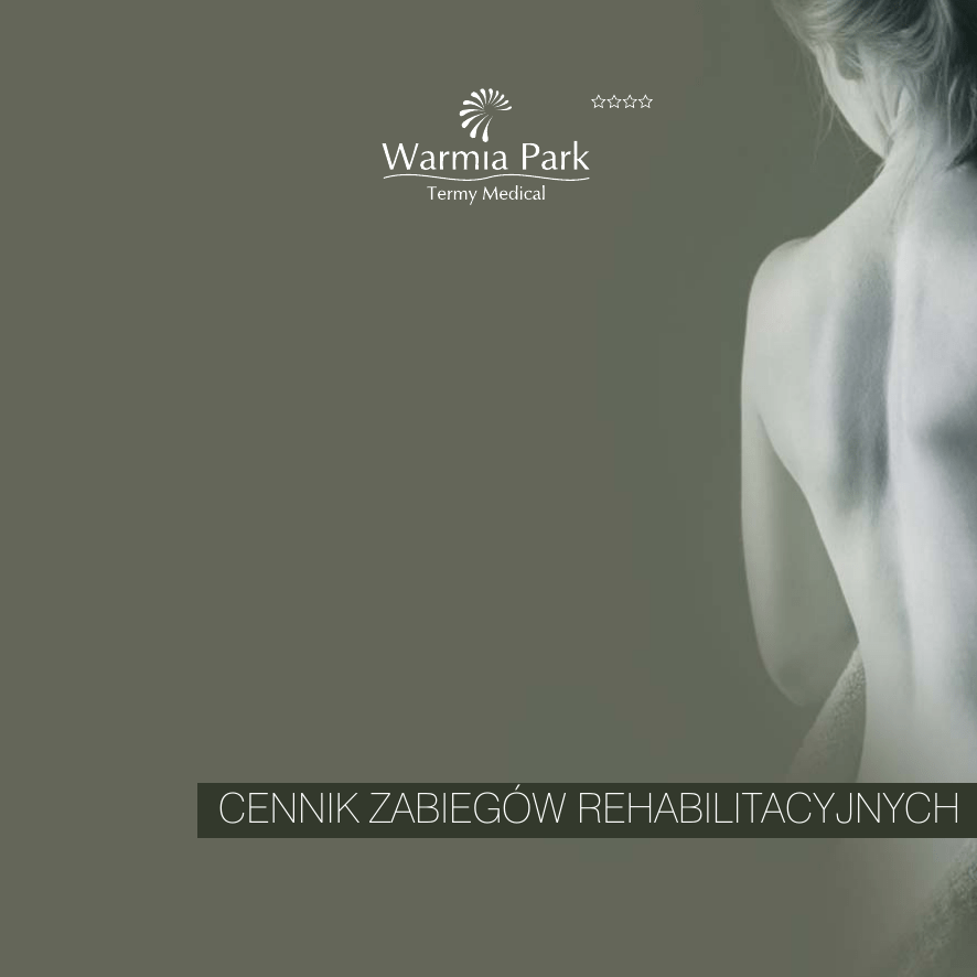 CENNIK ZABIEGÓW REHABILITACYJNYCH Termy Medical WARMIA PARK**** to zespół obiektów wypoczynkowych, gdzie można spędzić czas według ułożonego przez siebie programu, bądź po uprzedniej konsultacji ze specjalistą, pod okiem fachowców zadbać o własne zdrowie i urodę. Termy Medical WARMIA PARK**** to kompleks zdrowia, witalności, piękna oraz sportu przygotowany na najwyższym poziomie. Całość zlokalizowana jest w przepięknym zakątku Warmii i Mazur, na przesmyku między jeziorami Pluszne i Łańskie, z dostępem do brzegów Jeziora Pluszne. Termy położone są w odległości 18 km od Olsztyna – stolicy Warmii i Mazur, na terenie gminy Stawiguda - jednej z najpiękniejszych gmin Pojezierza Olsztyńskiego. Wysokiej klasy kompleks obiektów składa się z 4-gwiazdkowej części hotelowej, centrum rehabilitacji, centrum SPA, restauracji, klubu muzycznego, sal konferencyjnych, centrum sportowego oraz 3-poziomowego Aquaparku. Od początku przyświeca nam starożytna, a zarazem bardzo aktualna idea SPA, czyli kompleksowa pielęgnacja ciała, poprawa samopoczucia oraz pogłębienie harmonii z otoczeniem z wykorzystaniem naturalnych mocy leczniczych wody. Proponujemy Państwu pakiety pobytowe, a podczas nich zabiegi hydroterapeutyczne, kąpiele i masaże, zajęcia ruchowe i kontakt z naturą w jej najczystszej formie. Zapraszamy na programy pobytowe, m.in. Pakiet „Mój pierwszy raz” w wersji dla Pań i Panów, na „Egzotyczną podróż SPA”, „SPA na dobry nastrój”, czy na luksusowy Pakiet „Luksus płynie z natury”. Pragniemy również zachęcić Państwa do zadbania o własne zdrowie podczas Pakietu Rehabilitacyjnego. Specjalną ofertę przygotowaliśmy także dla firm, które w Termach Medical WARMIA PARK**** odnajdą idealne miejsce do zorganizowania szkolenia bądź konferencji w profesjonalnie wyposażonych salach konferencyjnych z chwilą relaksu na zabiegi SPA oraz zabiegi zdrowotne. Zapraszamy do skorzystania z naszych propozycji i spędzenia u nas świąt, weekendów oraz każdej wolnej chwili służącej poprawie zdrowia i samopoczucia. MEDICAL PARK Zadbaj o zdrowie i dobre samopoczucie. Odpocznij i zregeneruj siły w TMWP – kompleksie zdrowia, witalności, piękna i sportu. Zapraszamy Państwa na Pakiet Rehabilitacyjny, który został stworzony przez specjalistów w dziedzinie fizjoterapii, zdobywających swoją wiedzę i doświadczenie w ośrodkach zdrowia zarówno w kraju jak i za granicą. Jest to niezwykły pakiet wyróżniający się bogactwem zabiegów zdrowotnych. Znajdziemy w nim m.in. pełną ofertę elektroterapii, kinezyterapii, zabiegi ciepłolecznictwa, hydroterapii, hydrocycling, kinesiotaping. Pod specjalistyczna opieką fizjoterapeutów odzyskają tu Państwo nie tylko piękno ciała, ale także to, co w życiu najważniejsze – zdrowie. Przykładowy pakiet rehabilitacyjny W programie: - 5 noclegów - 2 posiłki dziennie - śniadanie w formie bufetu szwedzkiego, obiadokolacja - 1x vital drink (koktajl ze świeżych owoców) - konsultacja fizjoterapeutyczna - 2x hydrocycling – zajęcia na rowerach podwodnych w basenie solankowym - 2x masaż częściowy kręgosłupa - 3x ćwiczenia indywidualne „pod okiem” fizjoterapeuty - kinesiotaping - wykorzystanie plastrów o właściwościach podobnych do ludzkiej skóry, zmniejszających ból i nienaturalne odczucia skóry i mięśni - 2x aqua-gimnastyka w basenie solankowym - okład borowinowy na ekskluzywnej wodnej leżance Soft Pack - okład fango na ekskluzywnej wodnej leżance Soft Pack - bicze szkockie - laser - ultradźwięki - elektroterapia - kąpiel perełkowa w wannie z hydromasażem i koloroterapią - korzystanie z atrakcji trzypoziomowego aquaparku, wstęp do basenu solankowego, korzystanie z sauny suchej oraz infrared oraz sali fitness - 10% zniżki na pozostałe zabiegi w SPA Zastrzegamy sobie możliwość zmian. Istnieje możliwość zmiany zabiegu w razie przeciwwskazań do jego wykonania. Powyższy pakiet jest tylko przykładową propozycją. Każdy uczestnik pakietu, po uprzedniej konsultacji lekarskiej i fizjoterapeutycznej, otrzymuje pakiet zabiegów „na miarę”, dostosowany indywidualnie do własnych potrzeb. Ceniąc Państwa czas przygotowaliśmy ofertę pakietów „Podróż w czasie”. Pakiety z takim oznaczeniem można będzie realizować w krótszym czasie z zachowaniem całej palety zabiegów. Pakiety „Podróż w czasie” to minimum czasu & maximum relaksu i zdrowia! Pakiet rehabilitacyjny możliwy jest do realizacji w ciągu 6, 5 lub 4 dni: SEZON NISKI - 6 dni w pokoju 1-osobowym cena: 2.420,-PLN - 6 dni w pokoju 2-osobowym cena: 1.950,- PLN - 5 dni w pokoju 1-osobowym cena: 2.104,- PLN - 5 dni w pokoju 2-osobowym cena: 1.728,- PLN - 4 dni w pokoju 1-osobowym cena: 1.788,- PLN - 4 dni w pokoju 2-osobowym cena: 1.504,- PLN SEZON WYSOKI - 6 dni w pokoju 1-osobowym - cena: 2.625,-PLN - 6 dni w pokoju 2-osobowym - cena: 2.150,- PLN - 5 dni w pokoju 1-osobowym - cena: 2.268,- PLN - 5 dni w pokoju 2-osobowym - cena: 1.888,- PLN - 4 dni w pokoju 1-osobowym - cena: 1.908,- PLN - 4 dni w pokoju 2-osobowym - cena: 1.626,- PLN Ceny zawierają podatek Vat. Cennik zabiegów rehabilitacyjnych PROFESJONALNIE Wykwalifikowani fizjoterapeuci z wieloletnim doświadczeniem przy pomocy urządzeń najnowszej generacji zadbają o Twoje zdrowie. KOMFORTOWO W wygodnych gabinetach ekskluzywnego Hotelu czterogwiazdkowego zrelaksujesz się, a my w tym czasie zatroszczymy się o Twoje zdrowie. W DOGODNYM DLA CIEBIE TERMINIE To Ty decydujesz kiedy odbędą się Twoje zabiegi. Fizykoterapia jedna z form fizjoterapii i część medycyny fizykalnej, w której na organizm oddziałuje się rozmaitymi bodźcami fizycznymi wytwarzanymi specjalnymi urządzeniami. Galwanizacja – wykorzystanie prądu stałego w celu zmniejszenia pobudliwości włókien nerwowych - działanie przeciwbólowe, przeciwzapalne, oddziaływanie na naczynia krwionośne powodujące zwiększenie ukrwienia. 18,00 Jo