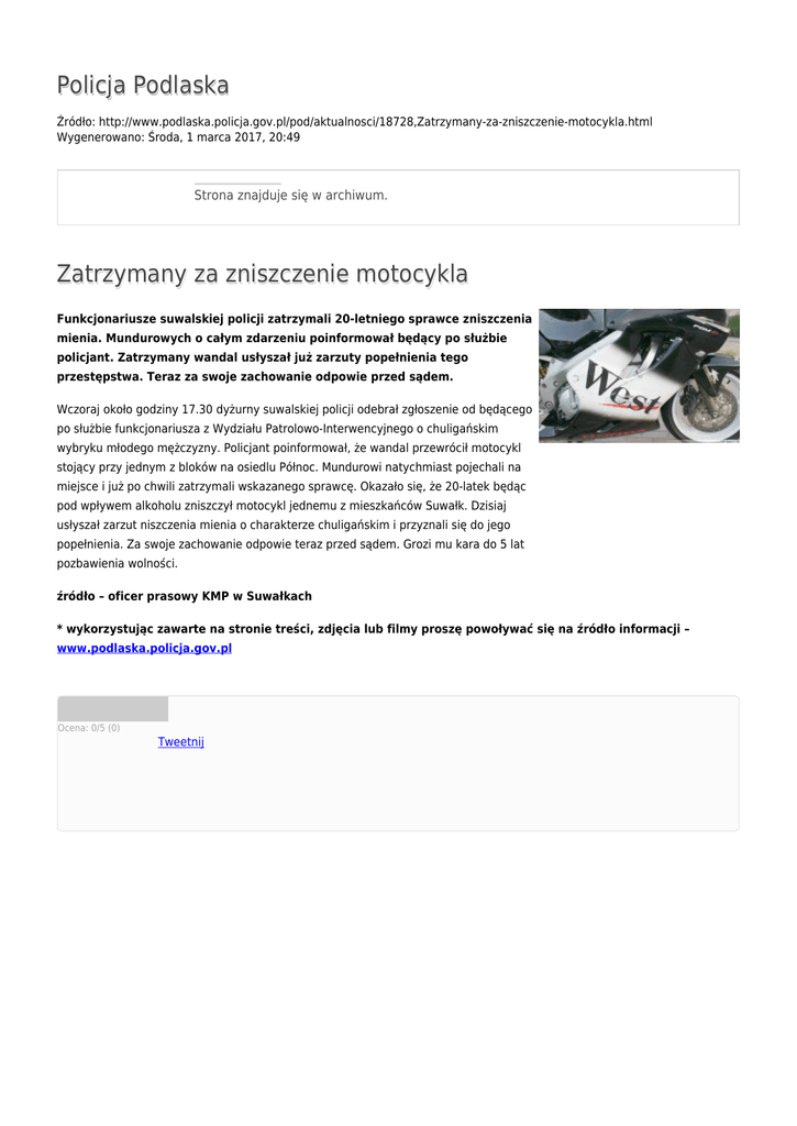 Policja Podlaska Zatrzymany za zniszczenie motocykla