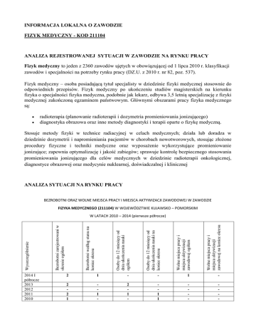 INFORMACJA LOKALNA O ZAWODZIE FIZYK MEDYCZNY