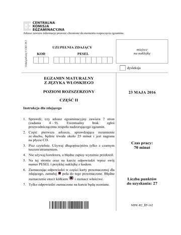 EGZAMIN MATURALNY Z JĘZYKA WŁOSKIEGO POZIOM