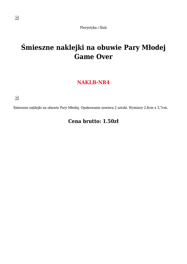 Florystyka i Ślub Śmieszne naklejki na obuwie Pary Młodej Game Over NAKLB-NR4 Śmieszne naklejki na obuwie Pary Młodej. Opakowanie zawiera 2 sztuki. Wymiary 2,8cm x 3,7cm. Cena brutto: 1.50zł
