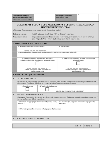 P B - 4 Strona 1 ZGŁOSZENIE BUDOWY LUB PRZEBUDOWY