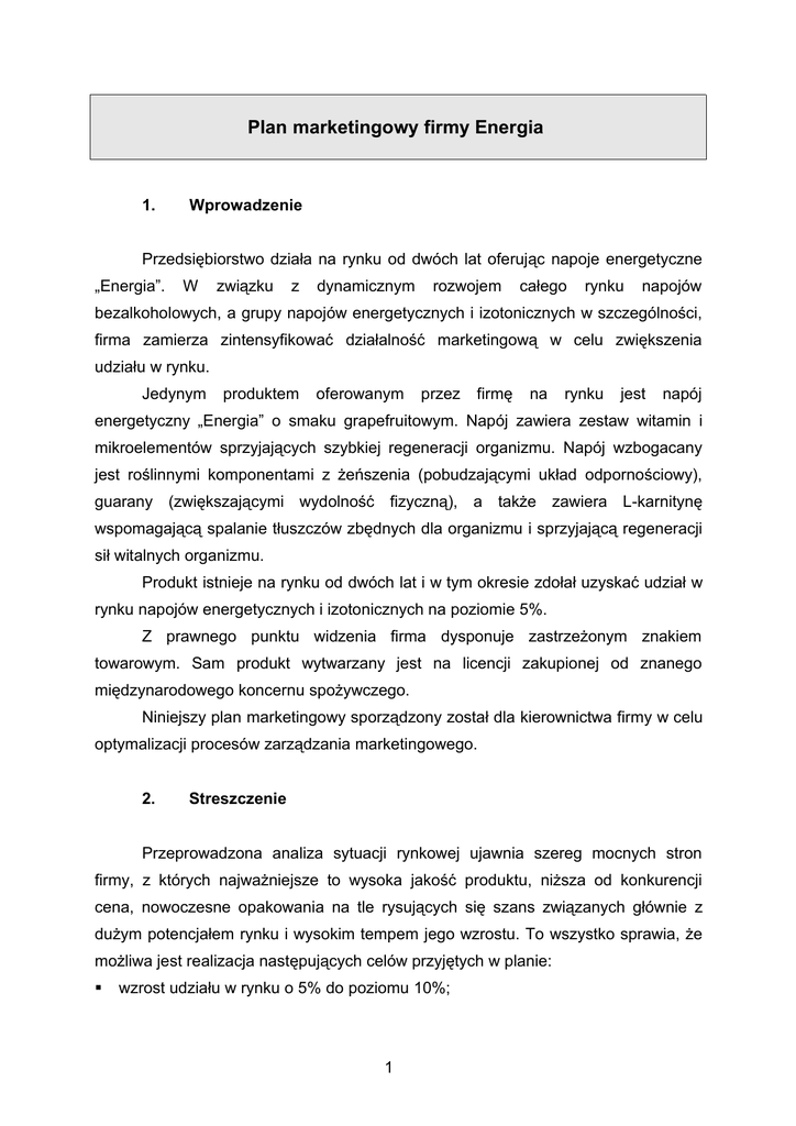 Plan marketingowy firmy Energia