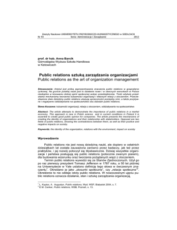 Public relations sztuką zarządzania organizacjami Public relations