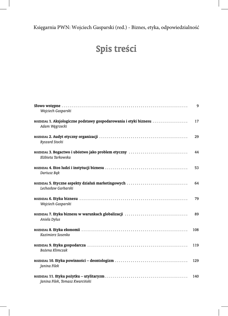 Księgarnia PWN: Wojciech Gasparski (red.) - Biznes, etyka, odpowiedzialność Spis treści Słowo wstępne . . . . . . . . . . . . . . . . . . . . . . . . . . . . . . . . . . . . . . . . . . . . . . . . . . . . . . . . . . . . . . . . Wojciech Gasparski ROZDZIAŁ 1. Aksjologiczne podstawy gospodarowania i etyki biznesu . . . . . . . . . . . . . . . . . . 9 17 Adam Węgrzecki ROZDZIAŁ 2. Audyt etyczny organizacji ............................................. 29 i ubóstwo jako problem etyczny . . . . . . . . . . . . . . . . . . . . . . . . . . . . . . 44 ludzi i instytucji biznesu . . . . . . . . . . . . . . . . . . . . . . . . . . . . . . . . . . . . . . . . . . 53 Ryszard Stocki ROZDZIAŁ 3. Bogactwo Elżbieta Tarkowska ROZDZIAŁ 4. Etos Dariusz Bąk ROZDZIAŁ 5. Etyczne aspekty działań marketingowych . . . . . . . . . . . . . . . . . . . . . . . . . . . . . . . Lechosław Garbarski ROZDZIAŁ 6. Etyka biznesu 64 ....................................................... 79 biznesu w warunkach globalizacji . . . . . . . . . . . . . . . . . . . . . . . . . . . . . . . . 89 ROZDZIAŁ 8. Etyka ekonomii . . . . . . . . . . . . . . . . . . . . . . . . . . . . . . . . . . . . . . . . . . . . . . . . . . . . . . Kazimierz Sosenko 108 ROZDZIAŁ 9. Etyka 119 Wojciech Gasparski ROZDZIAŁ 7. Etyka Aniela Dylus gospodarcza . . . . . . . . . . . . . . . . . . . . . . . . . . . . . . . . . . . . . . . . . . . . . . . . . . . Bożena Klimczak ROZDZIAŁ 10. Etyka powinności – deontologizm . . . . . . . . . . . . . . . . . . . . . . . . . . . . . . . . . . . . . 129 pożytku – utylitaryzm . . . . . . . . . . . . . . . . . . . . . . . . . . . . . . . . . . . . . . . . . . Janina Filek, Tomasz Kwarciński 140 Janina Filek ROZDZIAŁ 11. Etyka 6 Spis treści ROZDZIAŁ 12. Etyka w komunikowaniu społecznym przedsiębiorstwa . . . . . . . . . . . . . . . . . . 154 w public relations . . . . . . . . . . . . . . . . . . . . . . . . . . . . . . . . . . . . . . . . . . . . . 165 ROZDZIAŁ 14. Etyka w sferze finansów . . . . . . . . . . . . . . . . . . . . . . . . . . . . . . . . . . . . . . . . . . . . . Paul H. Dembiński 175 ROZDZIAŁ 15. Fuzje 193 Iwona Kuraszko ROZDZIAŁ 13. Etyka Piotr Lignar i przejęcia – analiza etyczna . . . . . . . . . . . . . . . . . . . . . . . . . . . . . . . . . . . . Bożena Klimczak ROZDZIAŁ 16. Geneza etyki działalności gospodarczej . . . . . . . . . . . . . . . . . . . . . . . . . . . . . . . . 201 Marcin Bukała ROZDZIAŁ 17. Infrastruktura etyczna biznesu . . . . . . . . . . . . . . . . . . . . . . . . . . . . . . . . . . . . . . . 217 ROZDZIAŁ 18. Kodeksy i programy etyczne . . . . . . . . . . . . . . . . . . . . . . . . . . . . . . . . . . . . . . . . . Wojciech Gasparski 233 ROZDZIAŁ 19. Konflikt 249 ROZDZIAŁ 20. Konsumenci: 259 ROZDZIAŁ 21. Korupcja 269 ROZDZIAŁ 22. Ład 289 Wojciech Gasparski interesów . . . . . . . . . . . . . . . . . . . . . . . . . . . . . . . . . . . . . . . . . . . . . . . . . . Anna Lewicka-Strzałecka prawa i obowiązki . . . . . . . . . . . . . . . . . . . . . . . . . . . . . . . . . . . . . . Anna Lewicka-Strzałecka .......................................................... Anna Lewicka-Strzałecka korporacyjny . . . . . . . . . . . . . . . . . . . . . . . . . . . . . . . . . . . . . . . . . . . . . . . . . . . Izabela Koładkiewicz ROZDZIAŁ 23. Menedżer – deontologia zawodu . . . . . . . . . . . . . . . . . . . . . . . . . . . . . . . . . . . . . . 307 i decyzje moralne . . . . . . . . . . . . . . . . . . . . . . . . . . . . . . . . . . . . . . . . . . . . . Tadeusz Tyszka, Anna Macko 319 Wojciech Gasparski ROZDZIAŁ 24. Oceny ROZDZIAŁ 25. Odpowiedzialność wobec pracowników . . . . . . . . . . . . . . . . . . . . . . . . . . . . . . . . 340 odpowiedzialnej konkurencyjności . . . . . . . . . . . . . . . . . . . . . . . . . . . 354 tradycje etyki życia gospodarczego . . . . . . . . . . . . . . . . . . . . . . . . . . . . . Włodzimierz Tyburski, Ryszard Wiśniewski 366 Czesław Szmidt ROZDZIAŁ 26. Podstawy Bolesław Rok ROZDZIAŁ 27. Polskie Spis treści ROZDZIAŁ 28. Raportowanie 7 i ocena społecznej odpowiedzialności . . . . . . . . . . . . . . . . . . . . 394 i biznes . . . . . . . . . . . . . . . . . . . . . . . . . . . . . . . . . . . . . . . . . . . . . . . . . . . . . Leszek Karczewski 412 Irena Pichola ROZDZIAŁ 29. Religia ROZDZIAŁ 30. Społeczna odpowiedzialność biznesu . . . . . . . . . . . . . . . . . . . . . . . . . . . . . . . . . . 423 odpowiedzialnego inwestowania . . . . . . . . . . . . . . . . . . . . . . . . . . . . 433 cnót . . . . . . . . . . . . . . . . . . . . . . . . . . . . . . . . . . . . . . . . . . . . . . . . . . . . . . . . . 450 oraz dylematy etyczne i prakseologiczne . . . . . . . . . . . . . . . . . . . . . . . . . Wojciech Gasparski 460 Bolesław Rok ROZDZIAŁ 31. Standardy Izabela Błażowska ROZDZIAŁ 32. Teoria Dariusz Bąk ROZDZIAŁ 33. Teorie ROZDZIAŁ 34. Trwały i zrównoważony rozwój ....................................... 474 ................................................... 488 ..................................................... 503 podwójnego skutku w działalności gospodarczej . . . . . . . . . . . . . . . . . Julita Sokołowska 515 Tadeusz Borys ROZDZIAŁ 35. Umowa społeczna Barbara Fryzel ROZDZIAŁ 36. Whistleblowing Marek Arszułowicz ROZDZIAŁ 37. Zasada ROZDZIAŁ 38. Zaufanie ........................................................... 527 Słownik pojęć podstawowych . . . . . . . . . . . . . . . . . . . . . . . . . . . . . . . . . . . . . . . . . . . . . . . . . . . zestawiła Julita Sokołowska 543 Indeks rzeczowy . . . . . . . . . . . . . . . . . . . . . . . . . . . . . . . . . . . . . . . . . . . . . . . . . . . . . . . . . . . . . . 569 O Autorach . . . . . . . . . . . . . . . . . . . . . . . . . . . . . . . . . . . . . . . . . . . . . . . . . . . . . . . . . . . . . . . . . . . 573 Piotr Sztompka
