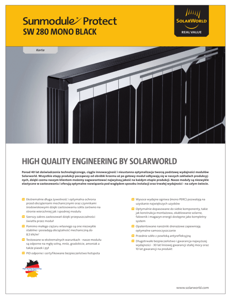 HigH Quality EnginEEring by SolarWorld SW 280 Mono blaCK