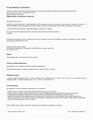 Urząd Miejski w Radomiu Zgłoszenie urodzenia dziecka