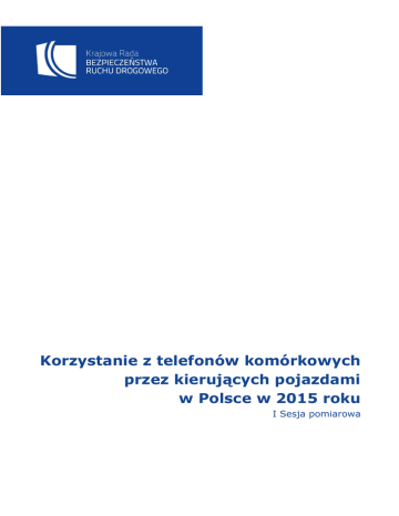 Korzystanie z telefonów komórkowych przez kierujących pojazdami w Polsce w 2015 roku I Sesja pomiarowa Wydawca: Ministerstwo Infrastruktury i Rozwoju Sekretariat Krajowej Rady Bezpieczeństwa Ruchu Drogowego ul. Chałubińskiego 4/6, 00-928 Warszawa Tel.: (22) 630-12-55 Fax: (22) 830-00-80 www.krbrd.gov.pl Realizacja: Instytut Transportu Samochodowego (ITS) Heller Consult sp. z o. o. (HC) W ramach umowy nr SKR/KF/BDG-VIII-32018-U-96/14 z dnia 03.09.2014 Praca zespołowa pod kierunkiem: Marii Dąbrowskiej-Loranc - ITS Tomasza Wojsza - HC Autorzy opracowania: ITS: Paweł Bany Dagmara Jankowska-Karpa Katarzyna Sicińska Aneta Wnuk Anna Zielińska HC: Andrzej Nadowski Magdalena Szyprowska Jan Zieliński Konsultacje merytoryczne: prof. Ryszard Krystek Warszawa, lipiec 2015 2 Spis treści 1. Streszczenie .............................................................................................. 4 2. Metodologia ............................................................................................... 5 3. Wyniki badań korzystania z telefonów komórkowych ....................................... 6 3.1. Samochody osobowe .......................................................................... 6 3.2. Pozostałe pojazdy ............................................................................... 9 3.3. Zmiany czasowe ................................................................................10 4. Wyniki badań korzystania z telefonów komórkowych w poszczególnych województwach .......................................................................................12 4.1. Porównanie.......................................................................................12 5. Podsumowanie i rekomendacje....................................................................16 3 1. Streszczenie W pierwszej sesji pomiarowej zrealizowanej w 2015 roku, w 16 województwach, w 86 punktach pomiarowych przeprowadzono badania mające na celu między innymi zebranie danych o kierujących pojazdami, korzystających podczas jazdy z telefonów komórkowych trzymanych w ręku. Badania wykonano metodą obserwacji z zewnątrz. W każdym województwie wykonano pomiary na drogach różnych kategorii (krajowych, autostradach (A), ekspresowych (S), wojewódzkich, powiatowych), w obszarach zabudowanych i poza obszarami zabudowanymi oraz w miastach wojewódzkich. Ogółem zebrano dane dotyczące 99 943 kierujących pojazdami (w tym 80 276 samochodami osobowymi, w tym taksówkami 683). Uzyskano następujące wyniki: Wskaźnik korzystania z telefonów komórkowych przez kierujących samochodami osobowymi w I sesji 2015 roku wyniósł 2,9%. W podziale na płeć kierującego samochodem osobowym, z telefonów korzystało nieznacznie więcej kobiet (3,1%) niż mężczyzn (2,9%). Najwięcej kierujących samochodami osobowymi, korzystających z telefonów komórkowych, znalazło się w grupie osób dorosłych (25-60 lat) – 3,1%, najmniej w grupie osób starszych (61 lat i więcej) – 0,9%. Więcej kierujących samochodami osobowymi korzystało z telefonów komórkowych podczas jazdy na obszarze niezabudowanym – 3,1% niż zabudowanym – 2,9%. Kierujący samochodami osobowymi najczęściej korzystali z telefonów komórkowych na drogach ekspresowych – 5,2%, a najrzadziej na autostradach – 1,9%. Wskaźnik korzystania z telefonów komórkowych podczas jazdy przez kierujących pozostałymi pojazdami (samochodami ciężarowymi, dostawczymi, motocyklami, motorowerami i rowerami) wyniósł w I sesji 2015 roku 4,4%. Najwyższy wskaźnik korzystania z telefonów komórkowych przez kierujących pojaz- dami samochodowymi zanotowano w województwach: małopolskim (5,2%), wielkopolskim (5,0%) i mazowieckim (4,6%), najniższy natomiast w województwach: pomorskim (1,3%), śląskim (1,7%) i warmińsko-mazurskim (1,8%). Najczęściej z telefonów komórkowych korzystali kierujący pojazdami samochodowymi w Krakowie i Poznaniu (5,2%) oraz Łodzi (4,1%), najrzadziej w Olsztynie (0,8%), Gdańsku (1,5%) i Opolu (1,7%). Wskaźnik korzystania z telefonów komórkowych przez kierujących pojazdami samochodowymi (samochody osobowe, w tym taksówki, dostawcze, ciężarowe) w Polsce spadł z 4,4% w 2014 r. do 3,3% w I sesji 2015 r. Wskaźnik korzystania z telefonów komórkowych przez kierujących samochodami osobowymi w Polsce spadł z 4,1% w 2014 r. do 2,9% w I sesji 2015 r. 4 2. Metodologia Badania dotyczące korzystania z telefonów komórkowych trzymanych w ręku przez kierujących pojazdami przeprowadzono w okresie od 30 marca do 5 czerwca 2015 roku przez konsorcjum złożone z Instytutu Transportu Samochodowego (ITS) oraz Heller Consult sp. z o. o. (HC). Pomiary zrealizowano w 16 województwach, w 86 punktach pomiarowych. W celu zebrania danych zastosowano metodę obserwacji z zewnątrz. W każdym województwie wykonano pomiary na drogach różnych kategorii (krajowych, autostradach (A), ekspresowych (S), wojewódzkich, powiatowych), w obszarach zabudowanych i poza obszarami zabudowanymi oraz w miastach wojewódzkich. Punkty pomiarowe były zlokalizowane w pobliżu miejsc badań prędkości (realizowanych w tym projekcie), w rejonach skrzyżowań z sygnalizacją świetlną lub rond, czyli tam gdzie kierujący znacznie redukowali prędkość oraz z dala od posterunków policji i w sposób niesugerujący badanym, że są obserwowani. Jeżeli w pobliżu punktu pomiaru prędkości nie było odpowiedniego miejsca, punkty obserwacji zachowań uczestników ruchu były lokalizowane na tej samej drodze przy pierwszym skrzyżowaniu spełniającym pozostałe, wyżej wymienione, cechy punktu obserwacyjnego. W każdym punkcie pomiary prowadzono w dni powszednie, w dobrych warunkach atmosferycznych w porze dziennej, przez minimum 2 godziny. W jednym punkcie obserwacyjnym dane były zbierane przez 1 do 4 specjalnie przeszkolonych obserwatorów. Liczba zbadanych pojazdów zależała od lokalizacji punktu pomiarowego: miasta wojewódzki