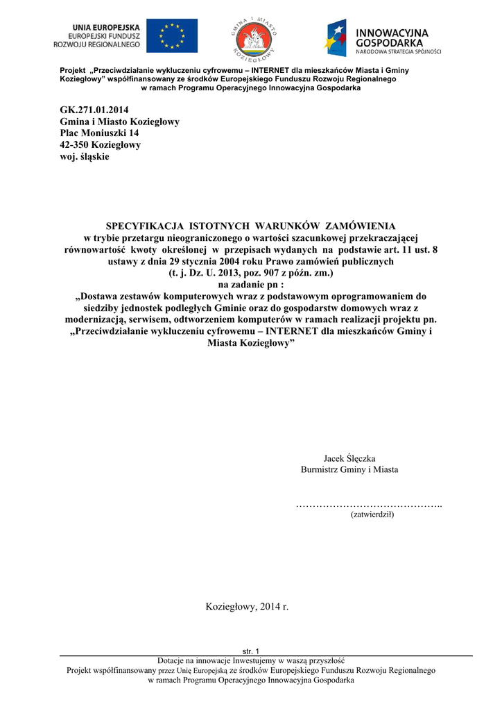GK.271.01.2014 Gmina i Miasto Koziegłowy Plac Moniuszki 14 42
