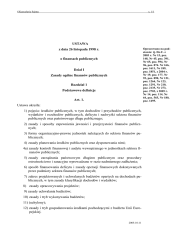 USTAWA z dnia 26 listopada 1998 r. o finansach publicznych Dział I