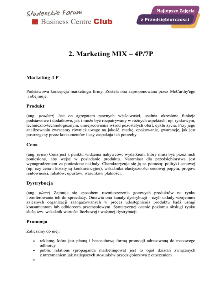 2. Marketing MIX – 4P/7P