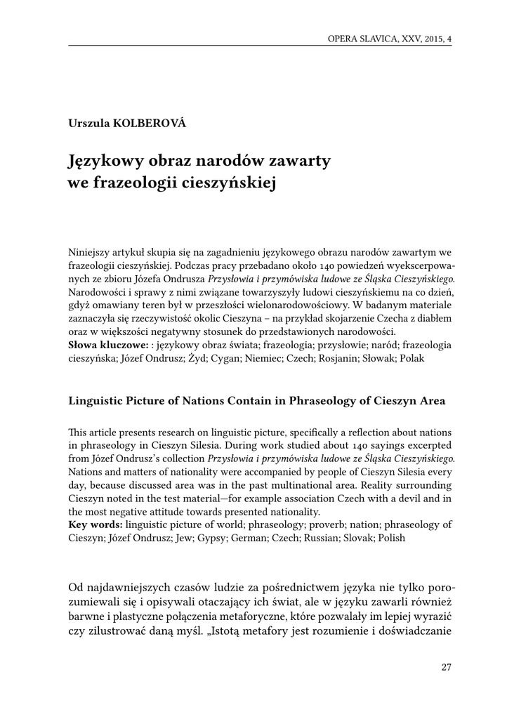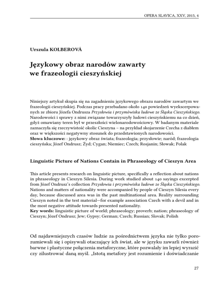 Językowy obraz narodów zawarty we frazeologii cieszyńskiej