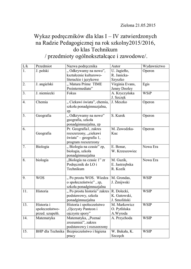 Podręczniki - zspzielona.edu.pl
