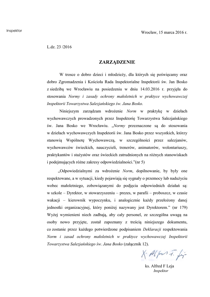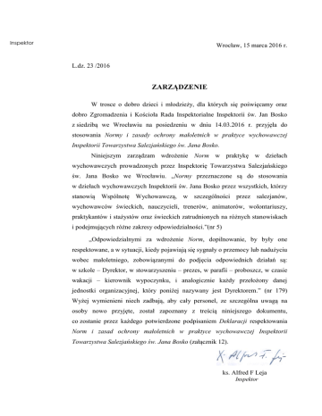 Norm i zasad ochrony małoletnich w praktyce wychowawczej Inspektorii