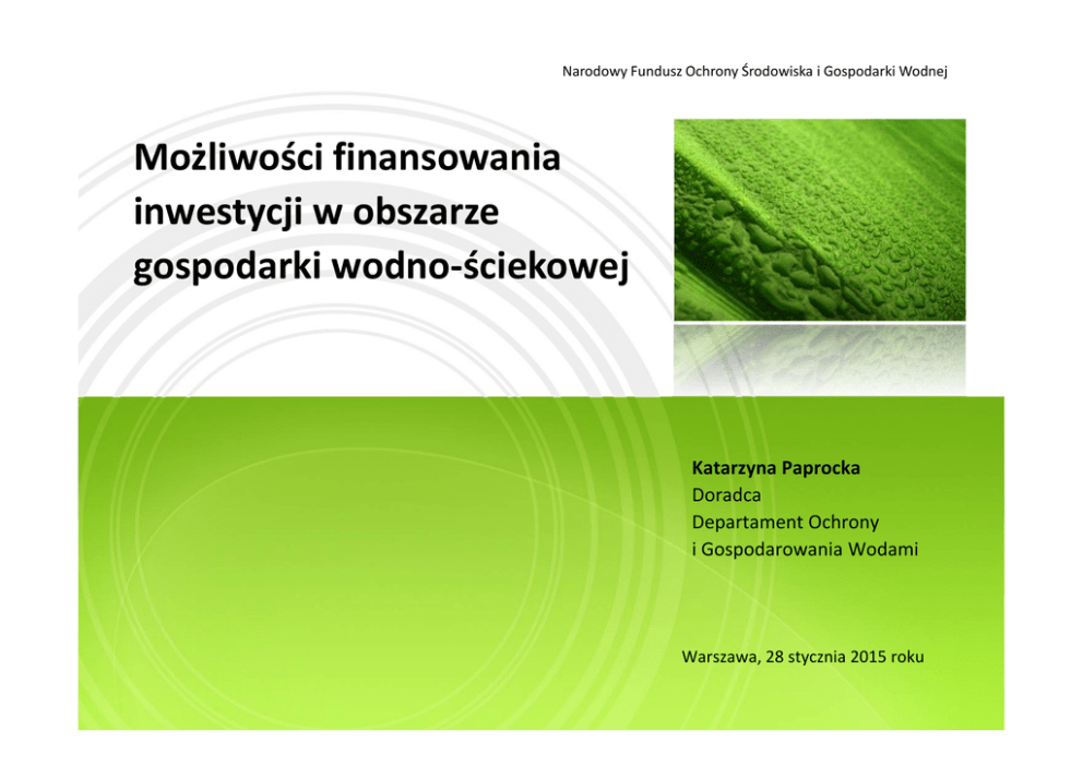 Możliwości finansowania inwestycji w obszarze gospodarki wodno