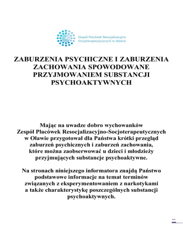 przyjmowaniem substancji psychoaktywnych, Warszawa: Centrum Pomocy Rodzinie przy Towarzystwie Rodzin