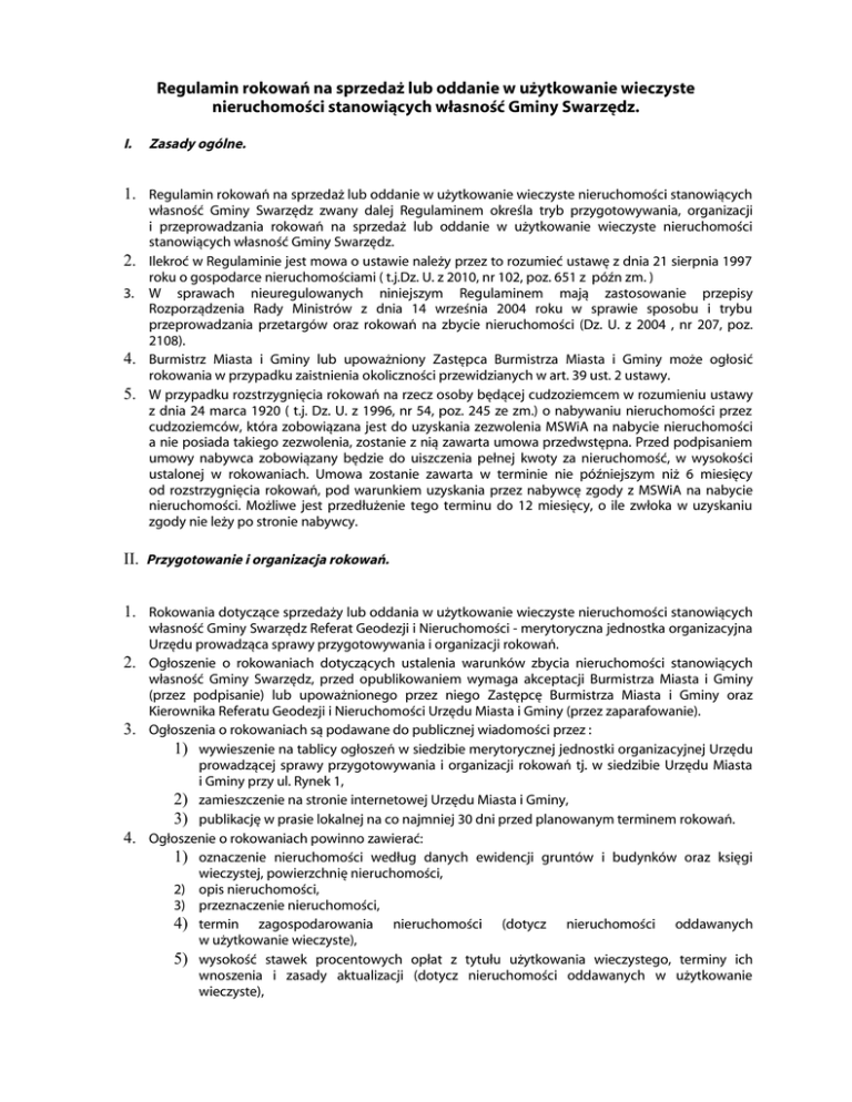 Regulamin rokowań na sprzedaż lub oddanie w użytkowanie