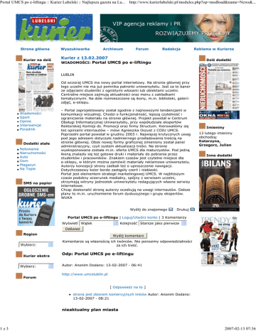 Portal UMCS po e-liftingu :: Kurier Lubelski :: CMS InfoBiz Server