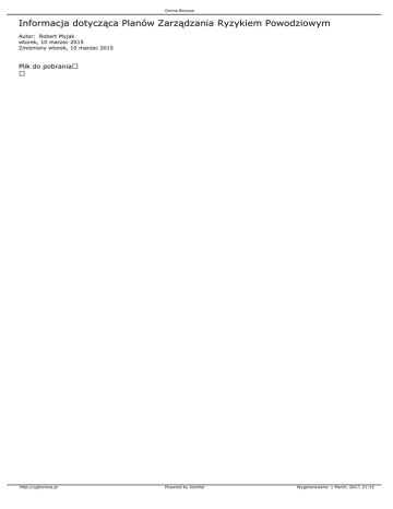 Gmina Borowa Informacja dotycząca Planów Zarządzania Ryzykiem Powodziowym Autor: Robert Myjak wtorek, 10 marzec 2015 Zmieniony wtorek, 10 marzec 2015 Plik do pobrania http://ugborowa.pl Powered by Joomla! Wygenerowano: 1 March, 2017, 21:15