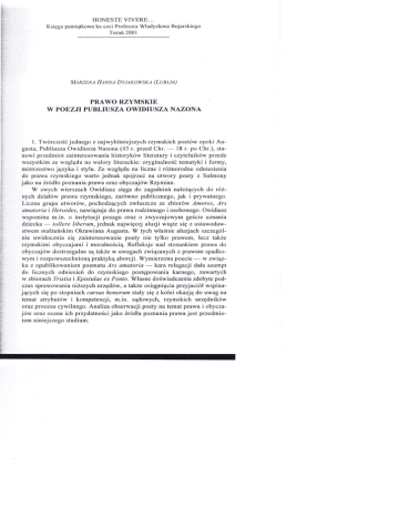 W swych wierszach owidiusz sięga do zagadniefl należących do różrrych działów prawa rzymskiego, zarówno publicznego, jak i prywatnego'
