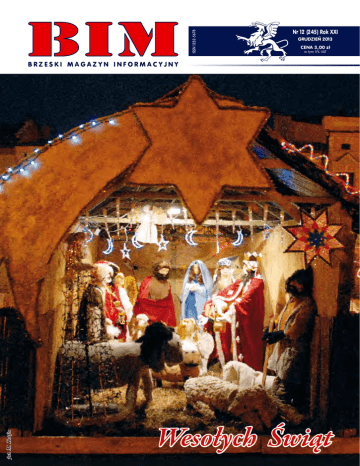 Nr 12 (245) Rok XXI Grudzień 2013 CENA 3,00 zł fot. M. Kotfis w tym 5% VAT Wesołych Świąt BRZESKI MAGAZYN INFORMACYJNY 2 grudzień 2013 grudzień 2013 Listopad w pigułce Zarządu tej spółki. – Pragnę zapewnić wszystkich naszych klientów, dostawców oraz pracowników, że zmiany w Zarządzie nie mają żadnego wpływu na relacje łączące ich ze Spółką. Szczególnie pragnę podkreślić, że Can Pack S.A. nie jest na sprzedaż – zapowiedział nowy prezes. 14 listopada – W warszawskim hotelu Polonia Palace miała miejsce Gala Sportowa, podczas której przedstawiciele Klubu Sportowa Polska wręczyli wyróżnienia Pasjonat Sportowej Polski 2013. W gronie nagrodzonych znalazł Towarzystwo Schronisk Młodzieżowych. Wyróżnienie odebrała dyrektor brzeskiej placówki Jolanta Bach, a wręczył je Prezes Zarządu Głównego PTSM Henryk Gołębiowski. 24 listopada – Wśród 26 osób nagrodzonych diecezjalnymi medalami Dei Regno Servire znalazło się pięć osób z parafii NMP Matki Kościoła i św. Jakuba Apostoła w Brzesku, które otrzymały medale brązowe. Są to Maria Babicz, Maria Kociołek, Jan Kusiak, Janusz Mastek i Antoni Patulski. Wszystkie medale zostały wręczone w tarnowskiej katedrze przez biskupa Andrzeja Jeża. 26 listopada – Generalna Dyrekcja Dróg Krajowych i Autostrad ogłosiła przetarg na budowę południowego zjazdu z autostrady w Brzesku, jako docelowego przebiegu drogi krajowej K75. Inwestor zastrzegł, aby czas budowy zjazdu potrwał 20 miesięcy od daty podpisania umowy. Wykonanie zjazdu kosztować ma blisko 90 milionów złotych. Będzie to jednojezdniowa droga o długości ponad 2 kilometrów, a połączyć ma autostradę z drogą K4 i drogą wojewódzką prowadzącą w kierunku Nowego Sącza. Już wkrótce rozpocząć ma się również budowa północnego zjazdu, który będzie zarazem obejściem Mokrzysk. Obydwa zjazdy mają być oddane do użytku w 2015 roku. 27 listopada – odbyła się sesja rady miejskiej, podczas której radni zapoznali się z analizami wyników nauczania w szkołach podstawowych i gimnazjach, a także podjęli aż 18 uchwał. Szczegóły wewnątrz numeru. 27 listopada – Wojciech Grzeszek, szef małopolskich struktur „Solidarności” wręczył księdzu Zygmuntowi Bochenkowi medal za zasługi dla Związku. Odznaczony to były wieloletni proboszcz parafii NMP Matki Kościoła i św. Jakuba Apostoła w Brzesku. Wcześniej pracował w tarnowskiej Kurii Diecezjalnej. To właśnie wtedy zaangażował się w działalność skierowaną na tworzenie związku w Tarnowie fot. arch. BOSiR 1 listopada – Rozpoczęła się trwająca trzy dni kwesta na rzecz ratowania zabytkowych pomników na brzeskim cmentarzu parafialnym zorganizowana przez Komitet Odnowy i Troski o Cmentarz Parafialny działający przy parafii pw. NMP Matki Kościoła i św. Jakuba Apostoła. W czasie jej trwania zebrano blisko 8 100 złotych. 4 listopada – W RCK-B odbyło się zorganizowane przez Federację Regionalnych Związków Gmin i Powiatów RP spotkanie z udziałem burmistrzów i urzędników samorządowych poświęcone zagadnieniom związanym z gospodarką wodno-kanalizacyjną. 6 listopada – Na brzeskim dworcu kolejowym zatrzymał się pociąg pendolino odbywający próbny przejazd. 11 listopada – Przemarszem pocztów sztandarowych do kościoła pw. NMP Matki Kościoła i św. Jakuba Apostoła rozpoczęły się obchody Święta Niepodległości. W kościele odprawiona została Msza święta w intencji Ojczyzny, po czym nastąpił przemarsz pod Grób Nieznanego Żołnierza, gdzie złożono wiązanki kwiatów. Po południu w budynku RCK-B mieszkańcy Brzeska uczestniczyli w tradycyjnym śpiewaniu pieśni patriotycznych połączonym z degustacją wojskowej grochówki. 11 listopada – Brzescy rzemieślnicy świętowali 50-lecie wybudowania i oddania do użytku budynku, w którym do dziś mieści się siedziba Cechu Rzemieślników oraz Małych i Średnich Przedsiębiorców. Uroczystości zainaugurowane zostały wkrótce po niepodległościowym marszu. W trakcie ich trwania Tadeusz Król oraz Józef Sowa otrzymali rzemieślnicze odznaczenia. 12 listopada – Phil Impink, dotychczasowy dyrektor finansowy Giorgi Global Holdings, spółki będącej wyłącznym właścicielem Can-Pack S.A, został powołany na stanowisko Prezesa WYDARZENIA BRZESKI MAGAZYN INFORMACYJNY się Marek Dadej, dyrektor Brzeskiego Ośrodka Sportu i Rekreacji 14 listopada – Zakończył się projekt aktywizacji bezrobotnych prowadzony przez Miejski Ośrodek Pomocy Społecznej. W ramach projektu 50 kobiet z gminy Brzesko wzięło udział w kursach dotyczących gastronomii, handlu i opieki nad starszymi osobami. 23 listopada – PAP poinformowała o rezygnacji biskupa Jana Styrny z kierowania diecezją lubelską. Biskup swoją decyzję uzasadnił stanem zdrowia ograniczającym należyte wykonywanie zadań na tym stanowisku. Jan Styrna urodził się w Przyborowie (parafia Szczepanów). 23 listopada – Szkolne Schronisko Młodzieżowe w Brzesku otrzymało złote wyróżnienie w Ogólnopolskim Konkursie Współzawodnictwa Schronisk Młodzieżowych organizowanym przez Polskie Wydawca: Miejski Ośrodek Kultury w Brzesku; www.mok.brzesko.pl. Dyżury w redakcji: pn.−pt. w godz. 8.00 −15.00. Redaguje zespół: Małgorzata Cuber– redaktor naczelna, Ewelina Stępień – sekretarz redakcji Jerzy Wyczesany, Beata Kądziołka, Klaudia Żurek, Konrad Wójcik, współpraca: Katarzyna Pacewicz-Pyrek, Bogumiła Put, Jacek Filip. Adres: 32−800 Brzesko, Plac Targowy 10, pok. 12, tel. (14) 68 49 664, e−mail: [email protected] Redakcja nie zwraca materiałów niezamówionych oraz zastrzega sobie prawo do skrótów i zmiany tytułów. Archiwalne numery do nabycia w redakcji. © Wszelkie prawa zastrzeżone. Za treść ogłoszeń redakcja nie bierze odpowiedzialności. Skład i druk: Brzeska Oficyna Wydawnicza A.R. Dziedzic, ul. Czarnowiejska 1, tel. (14) 686 14 70. BIM BIM BIM 3 infor