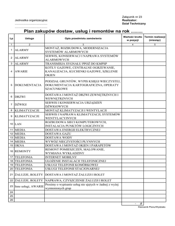 Załącznik nr 23 Plan zakupów dostaw i usług