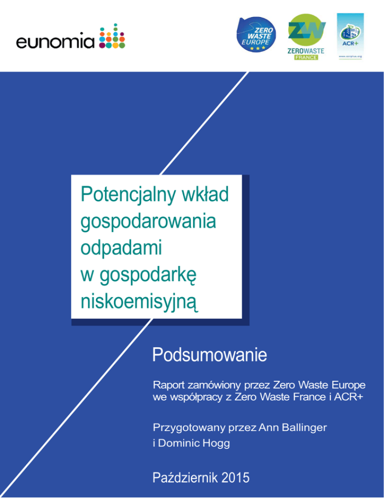 Potencjalny wkład gospodarowania odpadami w gospodarkę niskoemisyjną Podsumowanie Raport zamówiony przez Zero Waste Europe we współpracy z Zero Waste France i ACR+ Przygotowany przez Ann Ballinger i Dominic Hogg Październik 2015 Raport zamówiony przez Zero Waste Europe we współpracy z Zero Waste France i ACR+ Przygotowany przez Ann Ballinger i Dominic Hogg Zaakceptowany przez Eunomia Research & Consulting Ltd 37 Queen Square Bristol BS1 4QS United Kingdom Dominic Hogg (Dyrektor Projektu) Tel: +44 (0) 117 917 22 50 Fax: +44 (0) 871 714 29 42 Web: www.eunomia.co.uk Podziękowania Zero Waste Europe dziękuje za pomoc finansową z mechanizmu LIFE Wspólnoty Europejskiej. Wyłączna odpowiedzialność za treść tej publikacji spoczywa na Zero Waste Europe. Publikacja nie musi odzwierciedlać opinii fundatora wymienionego powyżej. Fundator nie ponosi odpowiedzialności za jakiekolwiek wykorzystanie zawartych tu informacji. Nasze podziękowania kierujemy do następujących recenzentów, którzy przekazali konstruktywne uwagi i opinie do poprzednich wersji tego dokumentu: Mariel Vilella, Delphine Levi Alvares, Jeffrey Morris, Joan Marc Simon, Enzo Favoino, Neil Tangri i ACR +. Zastrzeżenie Eunomia Research & Consulting zachowała należytą staranność w przygotowywaniu tego raportu, zapewniając że wszystkie fakty i analizy przedstawione są tak dokładne, jak to możliwe w ramach projektu. Jednak nie udziela się gwarancji w odniesieniu do prezentowanych informacji, a Eunomia Research & Consulting nie ponosi odpowiedzialności za decyzje lub działania podjęte na podstawie treści tego raportu. Pełna wersja raportu Pełna wersja niniejszego raportu jest dostępna bezpłatnie w języku angielskim The Potential Contribution of Waste Management to a Low Carbon Economy na stronie: http://www.zerowasteeurope.eu/zw-library/reports/ ©zerowastefrance Podsumowanie 3 Biorąc pod uwagę raporty na temat emisji gazów cieplarnianych (GC), można wybaczyć pogląd, że gospodarka odpadami jest odpowiedzialna za niewielką część emisji GC w Europie. Raport dotyczący emisji GC z UE‐28 w 2012 roku sugeruje, że sektor „odpady” generuje niewiele ponad 3% całkowitej emisji gazów odpowiedzialnych za globalną zmianę klimatu. W innych krajach udział sektora „odpadów” w emisji jest podobnie niski. Może to prowadzić do opinii, że sektor ten może zrobić bardzo niewiele dla ograniczenia emisji GC na skalę Unii Europejskiej i globalnie. Wykres E‐1: Udział poszczególnych sektorów w emisji w UE, 2012 r. 1.A.1.A. Publiczna produkcja energii i ciepła 1.A.3. Transport 1.A.2. Przemysł i budownictwo 4. Rolnictwo 1.A.4.B. Mieszkalnictwo 2. Procesy przemysłowe 1.A.4.A. Handel/instytucje 5. Odpady 1.A.1.B. Przetwórstwo ropy naftowej 1.B. Emisje lotne z paliw 3. Stosowanie rozpuszczalników i innych produktów 1.A.1.C. Produkcja paliw stałych i inne branże przemysłu energetycznego 1.A.4.C. Rolnictwo/Leśnictwo/Rybołówstwo 1.A.5. Inne (gdzie indziej nie wymienione) 0% Źródło: EEA (http://www.eea.europa.eu/ data-and-maps/data/data-viewers/ greenhouse-gases-viewer) 5% 10% 15% 20% 25% 30% Udział w całkowitej emisji % w 2012 w Tg (miliony ton), EU-28 (sektory 1-7, z wyjątkiem 5. LULUCF [użytkowanie gruntów, zmiany użytkowania gruntów i leśnictwa]) Tymczasem z badań prowadzonych przez różne podmioty wynika, że potencjalny wkład zapobiegania wytwarzaniu oraz gospodarki odpadami na łagodzenie wpływu emisji gazów cieplarnianych może być o wiele większy niż całkowita emisja raportowana w części „odpady” inwentaryzacji przygotowanej przez UNFCCCC [Ramowa Konwencja ONZ w sprawie Zmian Klimatu]1. Badania te wskazują, że potencjalne oszczędności, możliwe do osiągnięcia dzięki dalszym postępom w gospodarce odpadami (rzędu 150‐200 milionów ton 1 Okopol (2008) Climate Protection Potentials of EU Recycling Targets, http://www.eeb.org/publication/documents/Recycling‐ClimateChangePotentials.pdf; Prognos IFEU and INFU (2008) Resource savings and CO2 reduction potential in waste management in Europe and the possible contribution to the CO2 reduction target in 2020, Prognos in cooperation with IFEU Heidelberg, INFU Dortmund, October 2008; Günter Dehoust, Doris Schüler, Regine Vogt and Jürgen Giegrich (2010) Climate Protection Potential in the Waste management Sector – and Waste Wood, Umweltbundesamt (UBA), January 2010, Examples: Municipal Waste https://www.umweltbundesamt.de/sites/default/files/medien/461/publikationen/4049.pdf Projections of Municipal Waste Management and Greenhouse Gases, ETC/SCP working paper 4/2011, European Environmental Agency (EEA), August 2011; European Commission (2014) Impact Assessment Accompanying the document, Proposal for a Directive of the European Parliament and of the Council amending Directives 2008/98/EC on waste, 94/62/EC on packaging and packaging waste, 1999/31/EC on the landfill of waste, 2000/53/EC on end‐of‐life vehicles, 2006/66/EC on batteries and accumulators and waste batteries and accumulators, and 2012/19/EU on waste electrical and electronic equipment, Brussels, 2.7.2014, SWD(2014) 207 final. 4 Potencjalny wkład gospodarowania odpadami w gospodarkę niskoemisyjną równoważnika CO2 w 1995 roku) przewyższają poziom emisji przypisany części „odpady” inwentaryzacji (rzędu 100 milionów ton równoważnika CO2, co już jest niższym wynikiem niż 170 milionów ton równoważnika CO2 w 1995 roku)2. Jak zauważono we wspomnianym raporcie, sprawozdawanie emisji z sektora „odpadów” przez UNFCCC tylko w bardzo ograniczonym stopniu uwzględnia rolę, jaką udoskonalone programy gospodarki odpadami, zaprojektowane jako systemy zarządzania zasobami, mogą odegrać w redukcji gazów cieplarnianych. Cała gama pozytywnych efektów udoskonalonego gospodarowania zasobami i gospodarki odpadami została ujęta w innych częściach całościowej inwentaryzacji. Problemy z odpowiednim spojrzeniem 