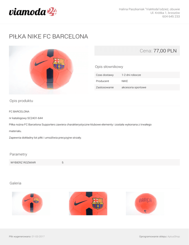 Halina Paszkaniak "ViaModa"odzież, obuwie Ul. Krótka 1, brzozów 604 645 233 PIŁKA NIKE FC BARCELONA Cena: 77,00 PLN Opis słownikowy Czas dostawy 1-2 dni robocze Producent NIKE Zastosowanie akcesoria sportowe Opis produktu FC BARCELONA nr katalogowy SC2431-644 Piłka nożna FC Barcelona Supporters zawiera charakterystyczne klubowe elementy i została wykonana z trwałego materiału. Zapewnia dokładny lot piłki i umożliwia precyzyjne strzały. Parametry WYBIERZ ROZMIAR 5 Galeria Plik wygenerowano: 01-03-2017 Powered by TCPDF (www.tcpdf.org) Oprogramowanie sklepu: AptusShop