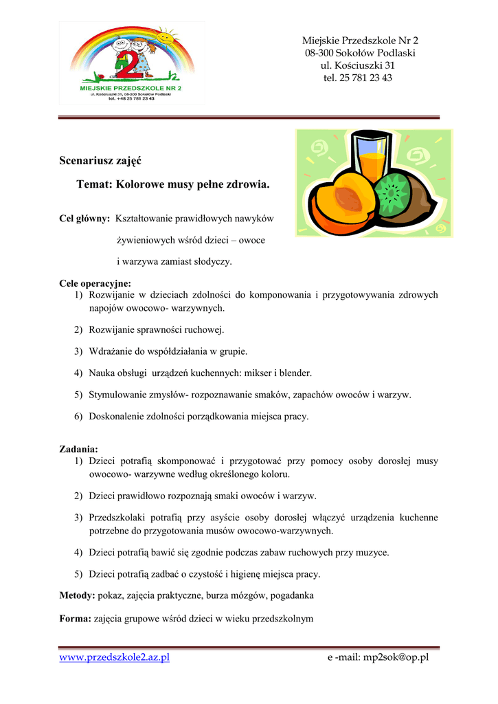Scenariusz zajęć Temat: Kolorowe musy pełne zdrowia.