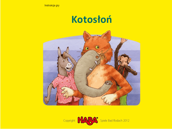 Instrukcja gry Kotosłoń Kotosłoń Szybka gra na refleks wspierająca rozwój funkcji wykonawczych dla 2-6 graczy w wieku 6-99 lat. Autor: Roberto Fraga Konsultacje merytoryczne: dr Sabine Kubesch, Laura Walk Ilustracje: Daniel Sohr Ilustracja liska Fex: Sonja Hansen Czas gry: 10-15 minut Osiołek Olek, Słoń Stefan, Kot Ksawery, Małpka Matylda i Kogut Konstanty są dobrymi przyjaciółmi i zawsze świetnie się razem bawią. Jednak dzisiaj sami nie wiedzą, co ze sobą począć. Wtem Olek wpada na pewien pomysł! Zagramy w Kotosłonia! Zwierzętom od razu wraca dobry humor i rozpoczynają grę... 3 Zawartość gry 60 kart ze zwierzętami, 1 karta Fex, 1 figurka Fex, 1 instrukcja gry Karty ze zwierzętami Przód: zwierzę wykonujące gest 1) Kot: zawołaj „miau” 2) Małpa: zawołaj „u-ha-ha” 3) Kogut: zawołaj „kukuryku” 4) Osioł: zawołaj „i-ha” 5) Słoń: zawołaj „tu-ru” 4 Tył: śpiące zwierzę Zwierzęta w czterech wielkościach Pomysł gry Karty przedstawiają pięć różnych zwierząt w czterech różnych wielkościach. Każdy gracz ma przed sobą stosik kart. Na środku stołu są zawsze wyłożone dwie inne karty. Zadaniem graczy jest porównać karty i jak najszybciej wydać głos naśladujący większe zwierzę. Najszybszy z graczy może położyć jedną ze swoich kart na karcie z większym zwierzęciem. Które ze zwierząt jest teraz większe? Celem gry jest jak najszybsze pozbycie się wszystkich kart. 5 Przygotowanie do gry Potasujcie wszystkie karty ze zwierzętami obrazkami do dołu. Każdy gracz otrzymuje dziewięć kart. Gracz rozpoczynający grę otrzymuje dziesięć kart. Pozostałe karty ułóżcie obrazkami do dołu w stosik kart do dobierania i odsuńcie na bok. Wierzchnią kartę ze stosiku połóżcie obrazkiem do góry na środku stołu. Obok postawcie figurkę Fex. Karta Fex będzie potrzebna dopiero w wariantach Fex i nie bierze udziału w grze. Wersja podstawowa gry: Zwierzęta, do pojedyku na głosy! Przebieg gry Wszyscy grają równocześnie. Gracz rozpoczynający grę odkrywa w kierunku środka stołu wierzchnią kartę ze swojego stosiku i kładzie ją obok wyłożonej odkrytej karty. Porównajcie, które ze zwierząt jest większe, i naśladując je, wydajcie odpowiedni głos. Czy najszybszy gracz spośród was wydał właściwy głos? • Tak? Świetnie! Możesz odkryć kolejną kartę ze swojego stosiku i położyć ją na karcie ze zwierzęciem, które przed chwilą naśladowałeś. 6 • Nie? To nie tak! Który spośród pozostałych graczy wyda właściwy głos? Najszybszy spośród was może odkryć kartę ze swojego stosiku i położyć na karcie ze zwierzęciem, którego głos przed chwilą naśladował. Uwaga: Jeżeli nie wiadomo, kto najszybciej wydał właściwy głos zwierzęcia, lub gdy nikt nie zrobił tego dobrze, powtórzcie ruch. Dziecko, które ostatnio wykładało kartę, bierze teraz kartę ze stosiku kart do dobierania i kładzie ją obrazkiem do góry na tej karcie. Ważne zasady „Chwyć Liska Fex!” Zamiast naśladować głos zwierzęcia, musicie natychmiast chwycić figurkę Fex, jeżeli: • obydwie karty przedstawiają to samo zwierzę (obojętnie jakiej wielkości) • zwierzęta na obu kartach są tej samej wielkości (obojętnie jakie zwierzęta). Koniec gry Kto pierwszy wyłoży wszystkie swoje karty, to jako najszybszy imitator głosów zwierząt wygrywa grę. 7 Nasza rada: Żeby urozmaicić grę, można oprócz wydawania głosu zwierzęcia wykonać także charakterystyczny dla niego gest. Ta kombinacja stanowi dobre przygotowanie do gier w wariancie Fex (patrz poniżej). Gesty zwierząt: Kogut: przyłóż do głowy rękę z rozcapierzonymi palcami, naśladującą koguci grzebień. Kot: obie ręce wyciągnij w przód jak pazury i poruszaj nimi, jakbyś chciał coś podrapać. Osioł: obie ręce przyłóż do głowy jak uszy. Słoń: skrzyżuj ramiona i wyciągnij w przód jak trąbę. Małpa: podrap się rękami pod pachami. 8 Efekt Fex Teraz nie możecie spuszczać Fexa z oczu! A to dlatego, że dodatkowo oprócz naśladowania głosu zwierzęcia musicie jeszcze wykonać gest innego zwierzęcia. Ale uwaga! Jeśli któreś ze zwierząt się zdrzemnęło, to należy zachowywać się cicho, żeby go nie zbudzić. Fex poddaje prawdziwej próbie waszą pamięć roboczą – jest wam ona potrzebna, żeby móc jak najszybciej wykonać odpowiednią czynność. Warianty Fex Istnieją trzy warianty wykorzystujące kartę Fex, w które można zagrać oprócz gry w wersji podstawowej. Ale uwaga! Fex wprowadza małe zamieszanie. Tutaj musicie naśladować głos dużego i gest małego zwierzęcia. Tutaj musicie naśladować gest dużego i głos małego zwierzęcia. 9 Wariant nr 1: Duże albo małe Wybierzcie jedną stronę karty Fex i połóżcie ją w poprzek wyłożonej na środku stołu karty ze zwierzęciem. Kładąc nową kartę na środku stołu, musicie teraz zareagować odpowiednio do karty Fex. Obowiązują przy tym zasady Chwyć liska Fex. Wariant nr 2: Fex – odwróć się W tym wariancie gry obowiązują zasady wariantu nr 1 Duże albo małe. Dodatkowa reguła: za każdym razem, gdy chwycicie figurkę Fex, musicie odwrócić kartę Fex na drugą stronę. Zmienia to wytyczne odnośnie tego, jaki odgłos i gest zwierzęcia należy wykonać. Wariant nr 3: Zwierzęta śpią! Oprócz reguł podstawowych wariantu nr 2 Fex – odwróć się obowiązują następujące zasady: • Zanim przystąpicie do imitowania głosu lub gestu zwierzęcia, musicie się przyjrzeć, które śpiące zwierzę widać na karcie na stosiku gracza, który ostatnio odkrył i dołożył kartę. • Jeśli to to samo zwierzę, co na jednej z dwóch kart na środku stołu, to można wydać głos lub zrobić gest tylko tego drugiego zwierzęcia. 10 Przykład: Karty z kogutem i osłem są wyłożone na środku stołu i zgodnie z kartą Fex musicie wykonać gest koguta i wydać głos osła. Wierzchnia karta na stosiku gracza, któ