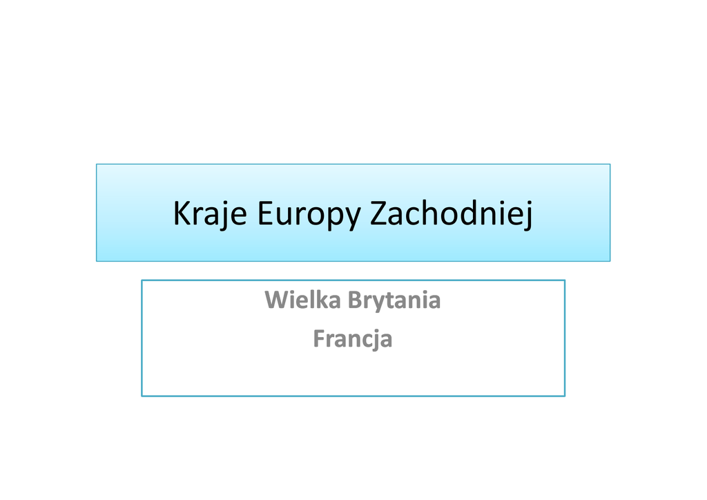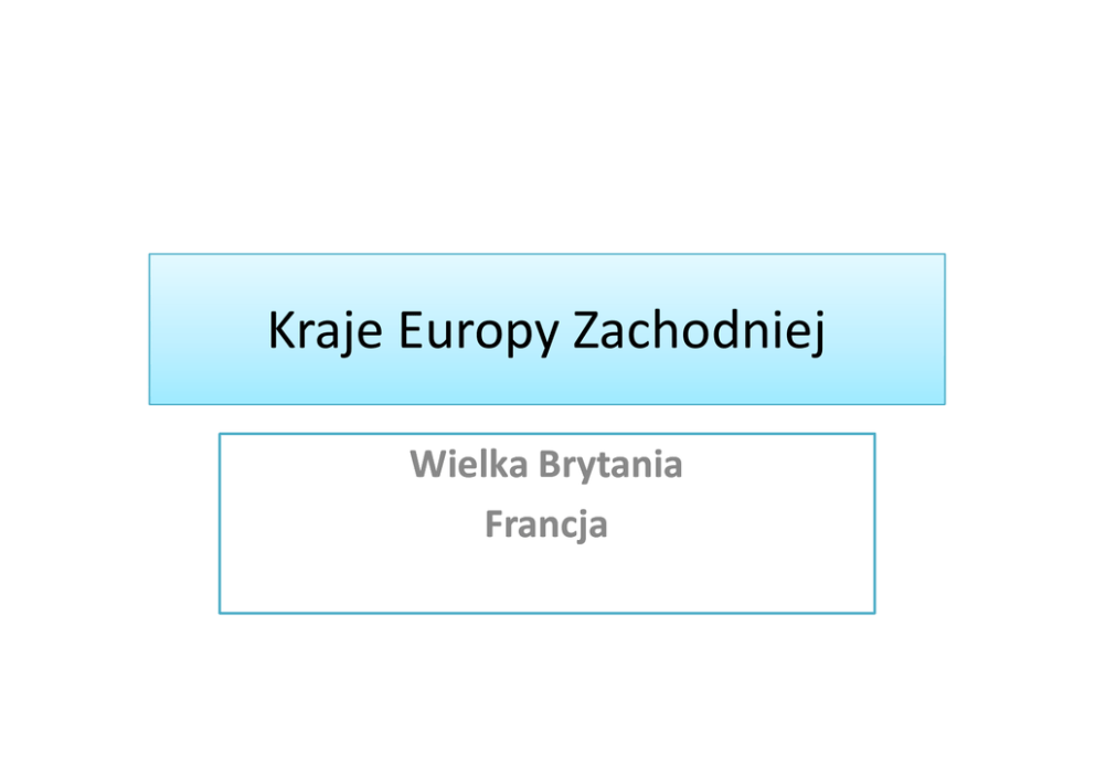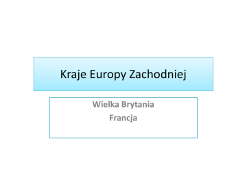 Kraje Europy Zachodniej Wielka Brytania Francja Kraje Europy Zachodniej cechy wspólne: • Wysoki poziom życia • Duża gęstość zaludnienia • Znaczny stopień przekształcenia środowiska naturalnego • Rozwój różnych gałęzi gospodarki w tym przemysłu wysokiej technologii • Napływ cudzoziemców • Znaczny udział usług w PKB Francja • • • • Stolica: Paryż Powierzchnia: 551tys. km2 Ludność: 65,5mln Klimat: umiarkowany ciepły, morski na północy, na południu podzwrotnikowy • Wody: rzeki Sekwana i Loara (ustrój rzeczny – deszczowy oceaniczny, wysoki poziom wód zimą, ujścia lejkowate) Francja – mapa (Korsyka należy do Francji) Francja – przemysł i transport • Przemysł środków transportu (samochodowy, stoczniowy, kolejowy, lotniczy) • Przemysł wysokiej technologii • Przemysł spożywczy • Przemysł chemiczny • Transport głównie samochodowy i kolejowy szybki pociąg TGV Francja - energetyka • Około 75% energii elektrycznej Francji wytwarzana jest w elektrowniach atomowych (!) a reszta po nieco ponad 10% w wodnych i węglowych Francja - rolnictwo • • • • Dobre gleby Rolnictwo wysokotowarowe (!) Eksport żywności Rolnictwo rozwija sie intensywnie na nizinnych obszarach północnej Francji i Basenu Akwitańskiego. Użytki rolne zajmują 55% powierzchni kraju. Grunty orne stanowią prawie 2/3, a łąki i pastwiska ok. 1/3 użytków rolnych. Znaczna wielkość gospodarstw. Wielki producent zbóż, zwłaszcza pszenicy 5,7% produkcji światowej, jęczmienia (5,3%) i kukurydzy (2,4%) - 4 miejsca na świecie. • Uprawa owoców – plantacje winogron, produkcja win. Wielka Brytania • Kraj wielonarodowościowy (Szkocja, Walia, Irlandia oraz imigranci z Indii, Pakistanu, Polski…) • Kraj wyspiarski (odmienna kultura) • Monarchia parlamentarna Wielka Brytania – środowisko geograficzne • Rzeki: Severn, Tamiza (wysokie pływy, ustrój deszczowy) • Cieśniny: Kanał La Manche, Kaletańska • Wyspy: Brytania, Irlandia, Hebrydy, Szetlandy • Wybrzeża klifowe, riasowe • Rzeźba: nizinna na południu, wyżynno górska w Szkocji i Walii • Klimat umiarkowany wybitnie morski, wysokie opady nawet do 3000mm głównie w okresie jesiennozimowym • Głębokie jeziora polodowcowe Wielka Brytania – środowisko geograficzne • Lasy zajmują mniej niż 12% powierzchni • Łąki i pastwiska zajmują 2/3 powierzchni użytków rolnych Wielka Brytania – przemysł i transport • Potęga gospodarcza i wojskowa • Przemysł (oparty na imporcie surowców) stoczniowy, wysokiej technologii, elektromaszynowy, środków transportu • Transport głownie samochodowy, maleje znaczenie kolejowego, wzrasta przesyłowego Wielka Brytania c.d. • Duży napływ cudzoziemców z Europy wschodniej i byłych kolonii • Duża gęstość zaludnienia (258os/km2) • Bogata kultura, tradycje, wpływy z turystyki • Uczelnie: Oxford, Cambridge • Londyn – siedziba wielu organizacji międzynarodowych i finansowych (Giełda londyńska) Kraje alpejskie • Szwajcaria • Austria Kraje alpejskie – cechy wspólne • • • • • • • • Położenie w najwyższych górach Europy Wysoki poziom życia Wpływy z turystyki Środowisko naturalne przekształcone w niewielkim stopniu Kraje neutralne Siedziby organizacji międzynarodowych (np. Czerwony Krzyż, centra kongresowe np. Wiedeń usługi bankowe) Utrudnienia w transporcie i osadnictwie (bariery osadnictwa) Bez dostępu do morza Alpy • Najwyższe w Europie: Mt Blanc 4807 • Orogeneza alpejska (jakby ktoś się nie domyślił) • Utrudnienia w transporcie i osadnictwie (bariery: klimatyczna, grawitacyjna ) • Przełęcze w Alpach: (Św. Bernarda, San Bernardino) • Tunele: Simplon, Św. Gotharda, Mt Blanc Szwajcaria • Państwo federacyjne: 26 kantonów), demokracja bezpośrednia, kraj neutralny, stolica Berno • Kraj wielojęzyczny (niemiecki, włoski, francuski, romansz (retoromański) • Centrum finansowe • Siedziba organizacji międzynarodowych (Zurych, Genewa) Szwajcaria - gospodarka • Przemysł: precyzyjny, spożywczy, mineralny, chemiczny, elektromaszynowy • Elektrownie: 58% wodne (!) i 40% jądrowe • Użytki rolne tylko 26%, głównie łąki i pastwiska często wysokogórskie • Produkcja zdrowej żywności • Chow bydła mlecznego (Milka ☺) i owiec • Turystyka: Alpy i jeziora np. Bodeńskie, Genewskie Austria • 2 x większa od Szwajcarii, ale o zbliżonej liczbie mieszkańców • Kraj neutralny, lecz dopiero po II wojnie • Język niemiecki • Podział: kraje związkowe (landy, jak w Niemczech) Austria - gospodarka • • • • Rolnictwo: zatrudnienie tylko 5% Leśnictwo – produkcja tarcicy Bogactwa: rudy żelaza Przemysł: hutnictwo, maszynowy, petrochemiczny, • Energetyka: 60% elektrowni wodnych, reszta cieplne • Transport: samochodowy oraz wodny rzeką Dunaj Kraje Azji • • • • Japonia Chiny Indie Kraje Bliskiego Wschodu Japonia • • • • Kraj wyspiarski (odmienna kultura, tradycje) Wyspy: Hokkaido, Honsiu, Kiusiu, Sikoku, Region sejsmiczny Kraj bardzo gęsto zaludniony 128mln ludzi na powierzchni niewiele większej od Polski (328os/km2) • Kraj górzysty (90% góry i wyżyny a tylko 10% niziny) i mocno zalesiony (60%) mało obszarów rolniczych • Klimat od zwrotnikowego do umiarkowanego, wpływ monsunu • Kraj wschodzącego słońca, kwitnącej wiśni, chryzantema znak cesarza Japonia cd • • • • • • Stolica: Tokio Szczyt: Fudżi 3776m wulkan Rzeki: małe, ale liczne Prądy morskie: Kuro-Siwo (c) oraz Oja-Siwo (z) Kraj jednolity narodowościowo (!) Kultura: ikebana, sado (herbata), sumo, kimono, gejsze, bonsai, kaligrafia (hiragana) kabuki (teatr), kamikadze, origami Japonia – gospodarka 3 na świecie • • • • • Praktycznie brak bogactw naturalnych Import surowców Eksport gotowych produktów Minimalne bezrobocie Przemysł wysokiej technologii, stoczniowy, elektroniczny, motoryzacyjny, hutniczy (!) Te