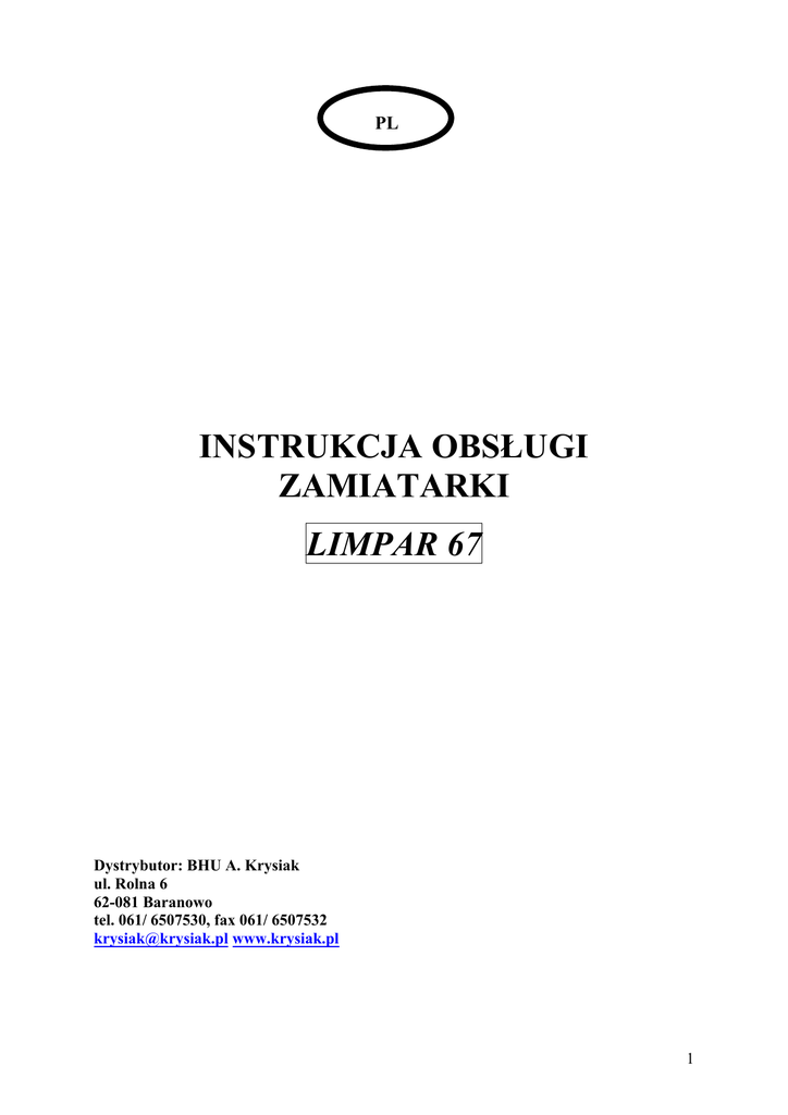 Instrukcja obsługi zamiatarka LIMPAR 67