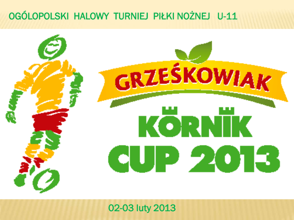 OGÓLOPOLSKI HALOWY TURNIEJ PIŁKI NOŻNEJ U-11 02-03 luty 2013 MISJA GRZEŚKOWIAK KÓRNIK CUP 2013 Powstał z myślą o popularyzacji piłki nożnej wśród najmłodszych adeptów tej dyscypliny sportu. Daje on możliwość rywalizacji chłopców z różnych rejonów naszego kraju, a dzięki temu pokazuje jak prowadzone jest szkolenie w tej kategorii wiekowej w poszczególnych regionach. Na terenie całego kraju odbywa się bardzo wiele turniejów lokalnych, przez co wielokrotnie drużyny spotykają się z tymi samymi zespołami. Brakuje zatem turniejów o charakterze ogólnopolskim, gdzie trenerzy mogliby porozmawiać na temat szkolenia, podzielić się własnymi doświadczeniami. Rywalizacja w duchu ,,fair play” od najmłodszych lat uczy naszych podopiecznych szacunku do drugiej osoby - przeciwnika, sędziego trenera, kibiców oraz rozwija cechy charakteru, które w dorosłym życiu stają się niezbędne. Dla chłopców jest to możliwość poznania nowych miejsc, nawiązania nowych kontaktów, przyjaźni, a przede wszystkim zagrania w piłkę z uznanymi zespołami na arenie krajowej w piłce seniorskiej. Dla wielu z nich może to być jedyna okazja, by zagrać z zespołami z ekstraklasy, ale w swojej kategorii wiekowej. Dla tych małych chłopców jest to wielkie przeżycie i radość. A przecież o to właśnie chodzi, by sport – piłka nożna dawała im radość i satysfakcję. ARENA ROZGRYWEK Hala główna to boisko o wymiarach 51x31m z trybunami dla 250 osób. BEZPŁATANA ODNOWA BIOLOGICZNA DLA KAZDEJ DRUŻYNY W PARKU WODNYM OAZA ( baseny , jacuzzi , sauna , zjeżdżalnie ) BAZA NOCLEGOWA KONTAKT: Marek DUDA tel. 604 235 030 Ilość miejsc ograniczona kontakt ul.Poznańska 5, 62-035 Kórnik tel. 61 819 08 21 · hotel-rodan.pl Motel "Podróżnik" Koszuty 16A 63-000, Środa Wielkopolska recepcja: (0-61) 285-41-36 gsm: 602-519-810 fax: (0-61) 28-77-169 www: http://www.motel-podroznik.com.pl e-mail: [email protected] kontakt Zajazd NON-STOP Gądki, ul. Dworcowa 1 tel. 61 8 171 300 fax 61 8 198 266 e-mail: [email protected] Kontakt telefoniczny: tel.: + 48 61 897 27 00 fax: + 48 61 897 27 01 kom.: +48 510 290 718 Bartosz Karaś Dyrektor ds. Marketingu i Public Relations kom.: +48 510 290 717 e-mail: [email protected] Kontakt e-mail: [email protected] www.hoteldaglezja.pll Odwiedź Nasz Hotel: ul. Woźniaka 7 62-035 Kórnk Położenie Hotelu Daglezja Hotel położony jest w Kórniku przy skrzyżowaniu drogi ekspressowej S11 (Koszalin - Katowice) i drogi wojewódzkiej 431 - łączącej drogę S11 z drogą S5 (Grudziądz / węzeł autostrady A1 - Wrocław). Doskonała lokalizacja pozwala zaledwie w kilka minut dotrzeć do Poznania lub wjechać na autostradę A2 Warszawa Berlin. OAZA Kórnickie Centrum Rekreacji i Sportu: 1,5 km ul. Poznańska 34 62-035 KÓRNIK tel. +48 61 8190 800 fax +48 61 8190 815 REZERWACJA POKOI - [email protected] Hotel Cezar Koszuty 7, 63-000 Środa Wielkopolska 61 285 29 32 cezarhotel.pl / 5 km od Kórnika/ SPRAWY ORGANIZACYJNE: 1) Wpisowe w wysokości 300 zł od drużyny należy wpłacać do 25 stycznia 2013 roku na konto KSS „Kotwica” Kórnik - BS w Kórniku 53 9076 0008 2001 0007 1316 0001 /z dopiskiem GRZEŚKOWIAK KÓRNIK CUP 2013/; 2) Wskazane hotele mają ograniczoną ilość miejsc /decyduje kolejność zgłoszenia/; 3) Rezerwacji drużyny dokonują indywidualnie w zależności od preferencji i wymagań. 4) Wszystkie hotele są położone w odległości do 5 km od miejsca rozgrywania turnieju. 5) Istniej również możliwość zakwaterowania w szkole (100 m od hali sportowej)./ kontakt z organizatorem turnieju. 6) W celu przygotowania programu turnieju prosimy o przysłanie zdjęcia drużyny i składu. 7) Zgłoszenia oraz pytania nadsyłać do 20.01.2013 na adres: [email protected] SPONSOR STRATEGICZNY TURNIEJU PARTNERZY TURNIEJU ORGANIZATOR ROZGRYWEK PATRONI MEDIALNI NAGRODY -Wszystkie zespoły otrzymają pamiątkowe medale i pamiątkowe puchary -Pierwsze trzy zespoły otrzymają sprzęt sportowy - Nagrodzeni zostaną również: najlepszy strzelec najlepszy zawodnik najlepszy bramkarz drużyna fair play TAK BYŁO W 2012 ROKU UCZESTNICY KÓRNIK CUP 2012 TASMANIA BERLIN ZAGŁĘBIE LUBIN ELANA TORUŃ ŚLĄSK WROCŁAW WARTA POZNAŃ LECH POZNAŃ CRACOVIA KRAKÓW ZAWISZA BYDGOSZCZ RADOMIAK RADOM BAŁTYK KOSZALIN INTER CAMPUS CHEMIK POLICE POGOŃ SZCZECIN ODRA OPOLE LECHIA DZIERŻONIÓW JAGIELLONIA BIAŁYSTOK ARKA GDYNIA KS POLKOWICE UNIA WARSZAWA KOTWICA KÓRNIK ZWYCIĘZCA TURNIEJU GRZEŚKOWIAK KÓRNIK CUP 2012 : SV TASMANIA BERLIN e.V. KLASYFIKACJA KOŃCOWA : 1. TASMANIA BERLIN 2. ELANA TORUŃ 3. KKS LECH POZNAŃ 4. KKPN BAŁTYK KOSZALIN 5. ŚLĄSK WROCŁAW 6. POGOŃ SZCZECIN 7. ZAWISZA BYDGOSZCZ 8. KSS KOTWICA KÓRNIK 9. ZAGŁĘBIE LUBIN 10. LECHIA DZIERŻONIÓW 11. CRACOVIA KRAKÓW 12. JAGIELLONIA BIAŁYSTOK 13. WARTA POZNAŃ 14. CHEMIK POLICE 15. INTER CAMPUS KRAKÓW 16. ARKA GDYNIA 17. RADOMIAK RADOM 18. UNIA WARSZAWA 19. KS POLKOWICE 20. ODRA OPOLE NAGRODY INDYWIDUALNE : KRÓL STRZELCÓW - OLAF KUBACKI ( LECH POZNAŃ ) NAJLEPSZY BRAMKARZ - IGOR PORAŃSKI ( ŚLĄSK WROCŁAW ) NAJLEPSZY ZAWODNIK - HUBERT MACIĄG ( ELANA TORUŃ ) TALENT PIŁKARSKI - HALIT BACAK ( TASMANIA BERLIN ) ZAPRASZAMY 2-3 LUTY 2013