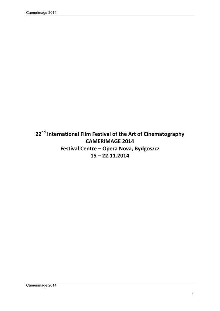22nd International Film Festival of the Art Of Cinematography CAMERIMAGE 2014 was organised