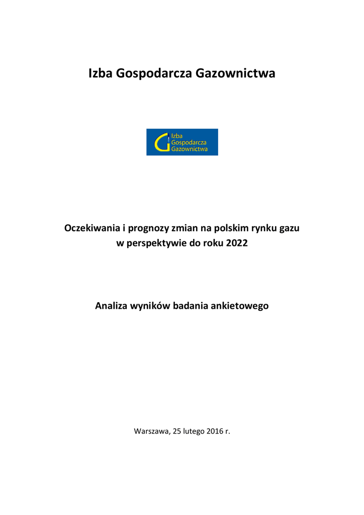 Izba Gospodarcza Gazownictwa Oczekiwania i prognozy zmian na polskim rynku gazu w perspektywie do roku 2022 Analiza wyników badania ankietowego Warszawa, 25 lutego 2016 r. I. Wprowadzenie Niniejszy dokument stanowi podsumowanie odpowiedzi uzyskanych w ramach przeprowadzonego w okresie grudzień 2015 – styczeń 2016 przez Izbę Gospodarczą Gazownictwa wśród uczestników rynku gazu badania ankietowego, dotyczącego: • • • Oceny zmian, które miały miejsce na krajowym rynku gazu ziemnego w latach 2011-2015. Oceny aktualnego stanu rynku gazu w Polsce. Oczekiwań oraz prognozowanych zmian na krajowym rynku gazu w perspektywie do roku 2022. Przeprowadzenie ankiety stanowiło pierwszy etap prac powołanej w październiku 2015 roku pod egidą Izby Gospodarczej Gazownictwa Rady Konsultacyjnej ds. Gazownictwa przy Prezesie URE, i miało na celu rozpoznanie potrzeb uczestników rynku gazu ziemnego co do modelu jego rozwoju w Polsce. Uzyskane w ramach ankiety odpowiedzi zostaną przekazane Prezesowi Urzędu Regulacji Energetyki oraz innym organom rządowym jako opinia jej uczestników oraz całej Izby Gospodarczej Gazownictwa na temat zmian, jakie miały miejsce na polskim rynku gazu ziemnego w ostatnich latach, oraz ich preferowanego przyszłego kierunku. Izba Gospodarcza Gazownictwa pragnie złożyć podziękowania wszystkim uczestnikom ankiety, którzy poprzez udzielenie wyczerpujących odpowiedzi na zawarte w niej pytania przyczynili się do lepszego zrozumienia problemów, z którymi spotykają się uczestnicy rynku gazu ziemnego w Polsce, oraz ich oczekiwań co do przyszłych kierunków jego rozwoju. Ankieta składała się z 12 pytań otwartych, zgrupowanych w czterech blokach tematycznych. Udział w badaniu wzięło łącznie dziesięć podmiotów: Lp. Nazwa Obszar działalności 1. Doradztwo T. Zadroga Usługi doradcze 2. G.EN. GAZ ENERGIA Sp. z o.o. Sprzedaż i dystrybucja gazu ziemnego 3. Grupa Azoty Zakłady Azotowe "Puławy" SA Produkcja oraz sprzedaż produktów chemicznych i nawozowych 4. Grupa DUON S.A. Sprzedaż i dystrybucja gazu ziemnego 5. Hermes Energy Group S.A. Sprzedaż gazu ziemnego 6. GAZ – SYSTEM S.A. Przesył gazu ziemnego 7. PGNiG S.A. Wydobycie, magazynowanie, sprzedaż i dystrybucja gazu ziemnego 8. Polska Spółka Gazownictwa sp. z o.o. Dystrybucja gazu ziemnego 9. Polsko-Niemiecka Izba Przemysłowo Handlowa Izba gospodarcza 10. RWE Polska S.A. Sprzedaż energii elektrycznej 2 II. Podsumowanie wyników badania Podstawowym celem ankiety było przeprowadzenie oceny zmian, jakie zaszły na polskim rynku gazu ziemnego w latach 2011-2015, przede wszystkim związanych z jego postępującą liberalizacją oraz wdrażaniem do prawodawstwa krajowego wydanych przez Unię Europejską aktów normatywnych dotyczących funkcjonowania rynku gazu w państwach członkowskich. W opinii większości uczestników badania zmiany, jakie zaszły na polskim rynku gazu ziemnego w latach 2011-2015, miały pozytywny wpływ na sytuację odbiorców paliwa gazowego, przede wszystkim dzięki: • • • Rozwojowi konkurencji na rynku, który znajduje odzwierciedlenie w rosnącej liczbie działających na nim podmiotów, poszerzaniu ich oferty produktowej, a także w stale rosnącej liczbie zmian sprzedawcy paliwa gazowego. Zmianom w funkcjonowaniu systemu przesyłowego gazu, związanym z rozbudową infrastruktury transgranicznej, wprowadzeniem rewersu wirtualnego i fizycznego na Gazociągu Jamalskim, oraz zmianom w Instrukcji Ruchu i Eksploatacji Sieci Przesyłowej dotyczącym zasad funkcjonowania rynku. Uruchomieniu obrotu paliwem gazowym na rynku giełdowym TGE, oraz znacznemu wzrostowi jego płynności, przede wszystkim dzięki wprowadzeniu obliga giełdowego. Jednocześnie uczestnicy badania wskazali na szereg problemów oraz barier, które ograniczają dalszy rozwój polskiego rynku gazu, i które pomimo wskazywania ich w przeprowadzonym w 2011 r. przez Prezesa URE poprzednim badaniu ankietowym, nie zostały do tej pory wyeliminowane. Do najważniejszych z nich należą: • • • • Brak zniesienia obowiązku przedkładania taryf, zarówno dla odbiorców instytucjonalnych, jak i domowych. Brak zmian w ustawie o zapasach oraz rozporządzeniu dywersyfikacyjnym, zmierzających do zmiany systemu magazynowania zapasów obowiązkowych oraz ograniczenia obowiązku dywersyfikacji dostaw. Rozbudowana sprawozdawczość, którą muszą prowadzić działające na rynku gazu podmioty. Brak wprowadzenia długoterminowych kontraktów zakupowych. Zdecydowanie najczęściej pojawiającą się w odpowiedziach uczestników badania ankietowego barierą wpływającą negatywnie na poziom rozwoju polskiego rynku gazu jest utrzymywanie obowiązku przedkładania Prezesowi URE do zatwierdzenia taryf. Uczestnicy badania wskazują, że uwolnienie cen paliwa gazowego, początkowo przynajmniej dla odbiorców instytucjonalnych, doprowadzi do szeregu pozytywnych konsekwencji dla polskiego rynku gazu, które zdecydowanie przeważają nad wiążącymi się z nim ryzykami. Spodziewane do osiągnięcia dzięki 3 zniesieniu obowiązku przedkładania taryf korzyści związane są przede wszystkim z poprawą konkurencyjności rynku, szerszym rozwojem dostosowanej do oczekiwań odbiorców oferty produktowej, pojawieniem się nowych graczy, lepszym dostosowaniem cen do rzeczywistej sytuacji rynkowej, zwiększeniem płynności rynku hurtowego oraz poprawą bezpieczeństwa energetycznego Polski. W opinii większości uczestników badania, uwolnienie cen dla największych odbiorców przemysłowych oraz małych i średnich odbiorców instytucjonalnych powinno nastąpić jak najszybciej. W przypadku uwolnienia cen dla odbiorców domowych, opinie ankietowanych podmiotów są podzielone – według części z nich powinno ono również zostać przeprowadzone niezwłocznie, w opinii innych natomiast należy je wstrzymać do czasu oceny skutków uwolnienia cen dla odbiorców instytucjonalnych, poprawy poziomu rywalizacji 