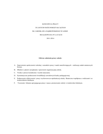 Koncepcja pracy IX LO - IX Liceum Ogółnokształcące