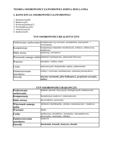 KONCEPCJA OSOBOWOŚCI ZAWODOWEJ JOHNA HOLLANDA