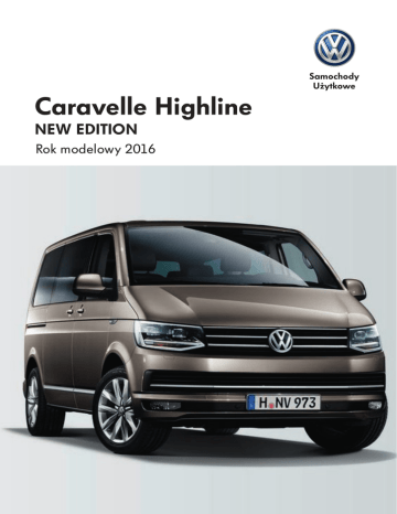 Caravelle Highline NEW EDITION Rok modelowy 2016 Ważny od 1.05.2015 Samochody Użytkowe 1 Modele bazowe rozstaw osi [mm] 3000 3400 silnik/ skrzynia biegów moc kW/KM układ siedzeń cena PLN bez VAT cena PLN z VAT 2.0 TDI 6-biegowa 110/150 2+3+3 147 850 181 856 2.0 TDI 4MOTION 6-biegowa 110/150 2+3+3 159 050 195 632 2.0 TDI DSG 7-stopniowa 110/150 2+3+3 156 750 192 803 2.0 TDI 4MOTION DSG 7-stopniowa 110/150 2+3+3 167 950 206 579 2.0 BiTDI 6-biegowa 150/204 2+3+3 160 450 197 354 2.0 BiTDI 4MOTION 6-biegowa 150/204 2+3+3 172 300 211 929 2.0 BiTDI DSG 7-stopniowa 150/204 2+3+3 169 300 208 239 2.0 BiTDI 4MOTION DSG 7-stopniowa 150/204 2+3+3 180 500 222 015 2.0 TSI 6-biegowa 110/150 2+3+3 141 700 174 291 2.0 TSI DSG 7-stopniowa 150/204 2+3+3 165 750 203 873 2.0 TSI 4MOTION DSG 7-stopniowa 150/204 2+3+3 177 600 218 448 2.0 TDI 5-biegowa 62/84 2+3+3 151 600 186 468 2.0 TDI 5-biegowa 75/102 2+3+3 162 750 200 183 2.0 TDI 6-biegowa 103/140 2+3+3 160 450 197 354 2.0 TDI 4MOTION 6-biegowa 103/140 2+3+3 171 750 211 253 2.0 TDI DSG 7-stopniowa 103/140 2+3+3 164 150 201 905 2.0 BiTDI 6-biegowa 132/180 2+3+3 176 000 216 480 2.0 BiTDI 4MOTION 6-biegowa 132/180 2+3+3 173 050 212 852 2.0 BiTDI DSG 7-stopniowa 132/180 2+3+3 184 350 226 751 2.0 BiTDI 4MOTION DSG 7-stopniowa 132/180 2+3+3 145 450 178 904 2.0 TSI 6-biegowa 110/150 2+3+3 169 450 208 424 2.0 TSI DSG 7-stopniowa 150/204 2+3+3 181 450 223 184 Zapytaj swojego dealera o aktualną ofertę promocyjną samochodów użytkowych Volkswagen. Ceny modeli bazowych zawierają pakiet obowiązkowy, obejmujący: gaśnicę, trójkąt ostrzegawczy, apteczkę pierwszej pomocy, osłony przeciwbłotne – przód i tył pojazdu, kamizelkę, transport i ubezpieczenie do stacji dealerskiej, przygotowanie pojazdu do wydania. Zastrzega się możliwość wprowadzania zmian. 2 Wyposażenie standardowe Nadwozie Chromowana listwa osłony wlotu powietrza do chłodnicy Dopuszczalna masa całkowita 2.850/3.000/3.080/3.200 kg zależnie od wersji silnikowej Drzwi przesuwne po prawej i lewej stronie otwierane elektrycznie ze wspomaganiem domykania Folia ochronna na masce - ochrona przed uszkodzeniami w trakcie transportu Klapa tylna z oknem (ogrzewanym) i wycieraczką Elektryczne wspomaganie domykania tylnej klapy Podświetlenie LED rejestracji na tylnej klapie Lusterka zewnętrzne elektrycznie regulowane i ogrzewane Obudowy lusterek zewnętrznych oraz klamki drzwi i uchwyt tylnej klapy w kolorze nadwozia Osłony nadkoli Oznaczenie modelu Caravelle Higline na tylnej klapie Punkty mocowania pod bagażnik dachowy 8 szt. dla rozstawu osi 3000 mm, 10 szt dla rozstawu 3400 mm Samonośne całkowicie stalowe (częściowo ocynkowane) oparte na poprzecznicach i podłużnicach Teleskopy przy pokrywie silnika Uchwyty holownicze: z przodu demontowalny, z tyłu mocowany na stałe Wszystkie szyby termoizolacyjne Zbiornik paliwa o pojemności 70 l, wlew paliwa zabezpieczany poprzez zamknięte drzwi kierowcy (standard dla TSI , 80l) Zderzaki lakierowane w kolorze nadwozia Podwozie Zawieszenie przednie Niezależne zawieszenie kół - Kolumny McPherson’a (sprężyny śrubowe, amortyzatory teleskopowe), stabilizator, wahacze mocowane do ramy pomocniczej, rama pomocnicza mocowana do nadwozia poprzez tuleje metalowo-gumowe (tłumienie drgań i hałasu) Zawieszenie tylne Niezależne zawieszenie kół ze sprężynami śrubowymi Miniblock, amortyzatory teleskopowe, wahacze skośne, stabilizator Układ przeniesienia napędu Jednotarczowe sprzęgło suche (dla manualnej skrzyni biegów) Podwójne wielopłytkowe sprzęgło mokre (dla skrzyni automatycznej DSG) Napęd na koła przednie Przy napędzie 4MOTION stały napęd na cztery koła, rozdział mocy na oś przednią i tylną realizowany za pomocą sprzęgła Haldex. System automatycznego wyłączania silnika Start-Stop Układ hamulcowy 16” lub 17” zależnie od wersji silnikowej ABS/EDS/ASR/MSR/ESP (MSR nie dla wersji 4MOTION) Hamulce tarczowe wentylowane z przodu i z tyłu Hydrauliczny, dwuobwodowy ze wspomaganiem Korektor siły hamowania zależny od obciążenia Norma emisji spalin Euro 6 BlueMotion Technology - system Start-Stop wyłączający silnik podczas postoju, system rekuperacji odzyskujący energię podczas hamowania, asystent ruszania z miejsca na wzniesieniach W wersjach z silnikami diesla: System SCR (selektywna redukcja katalityczna / zbiornik AdBlue) służący zredukowaniu emisji składników spalin: cząstek stałych i tlenków azotu Układ kierowniczy Wspomaganie układu kierowniczego z bezpieczną kolumną kierownicy regulowaną w dwóch płaszczyznach Zabezpieczenie przed złamaniem blokady kierownicy Koła/opony 17” obręcze kół ze stopu metali lekkich Cascavel Pełnowymiarowe koło zapasowe Opony o zmniejszonym oporze toczenia Opony bez wskazania marki Wskaźnik ciśnienia w oponach Wyposażenie funkcjonalne 2 kluczyki składane Prędkościomierz, obrotomierz, wskaźnik poziomu paliwa, wskaźnik temperatury płynu chłodzącego Centralny zamek z możliwością uruchamiania od wewnątrz sterowany pilotem Dogrzewacz - zwiększający wydajność grzewczą i skracający czas pracy zimnego silnika Filtr cząstek stałych dla silników TDI, norma spalania Euro6 Gniazdo 12 V Wyświetlacz wielofunkcyjny “Plus”, wyświetla informacje: godzina, czas jazdy, średnie i chwilowe zużycie paliwa, zasięg do następnego tankowania, przebyta droga, bieg, kierunek geogr. - kompas (gdy aktywny jest system nawigacji), temperatura zewnętrzna klimatyzacja trzystrefowa Climatronic z elektroniczną regulacją, z dodatkowym sterowaniem w przestrzeni pasażerskiej – dwie listwy wielofunkcyjne w podsufitce z nawiewami i lampkami do czytania Lusterka zewnętrzne elektrycznie regulowane i ogrzewane (po stronie kierowcy asferyczne, po stronie pasażera lusterko o poszerzonym polu widzenia) Obrotomierz i zegar cyfrowy Ogrzewanie kabiny kierowcy i przestrzeni pasażerskiej z manualną regulacją Podświetlenie tablicy rozdzielczej przy wyłączo