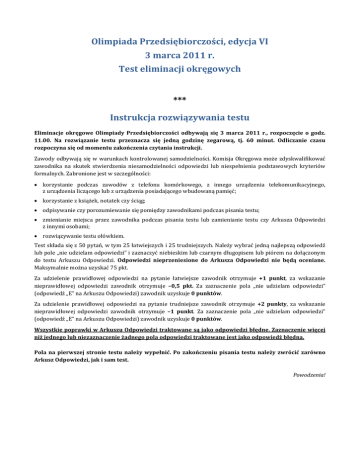 Olimpiada Przedsiębiorczości, edycja VI 3 marca 2011 r. Test
