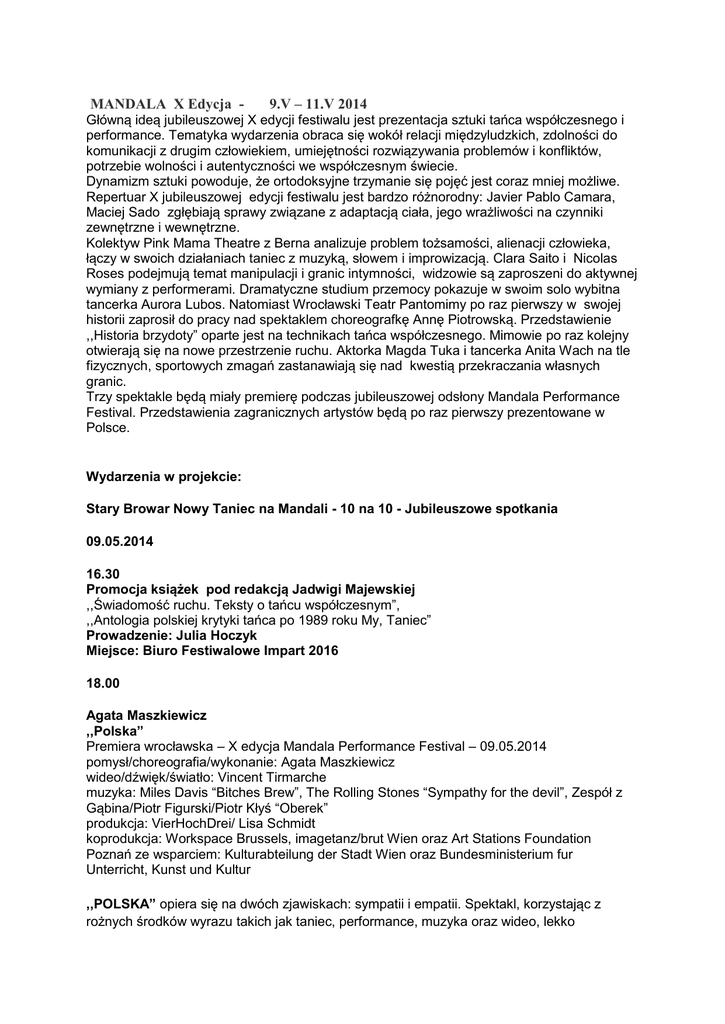 Premiera wrocławska – X edycja Mandala Performance Festival – 09.05.2014
