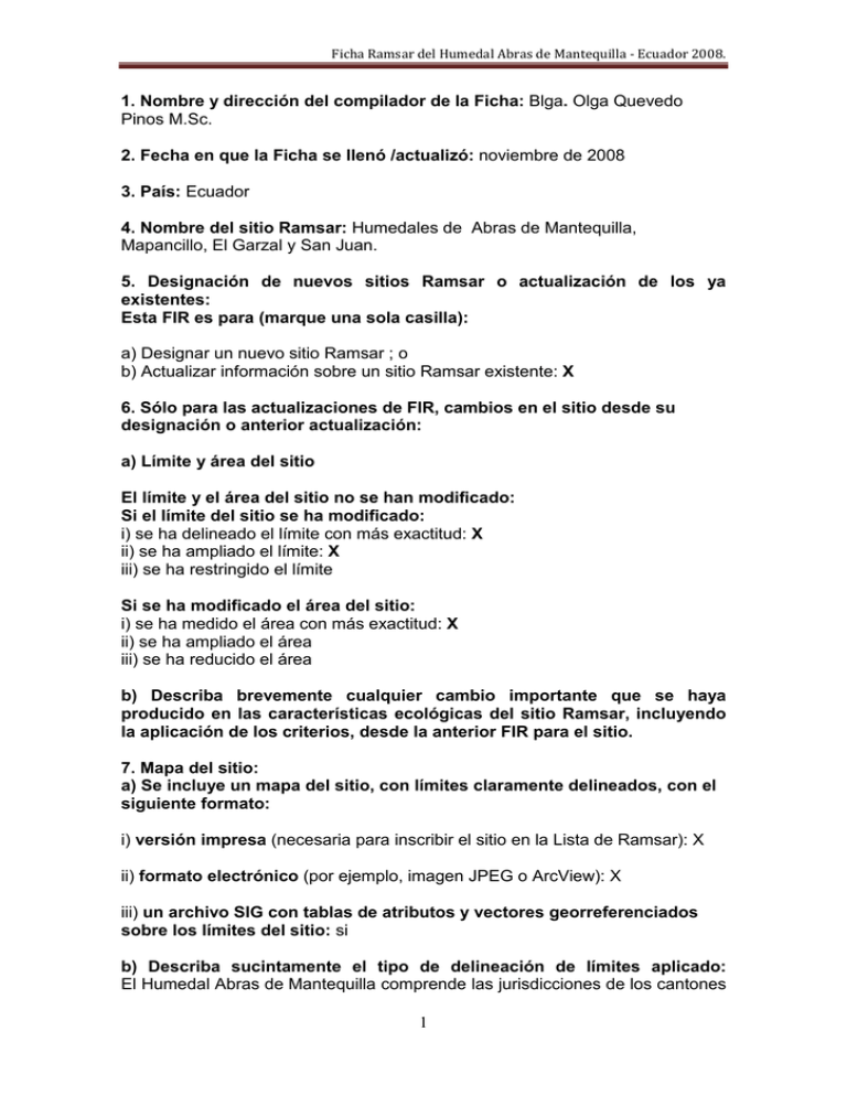 Ficha Ramsar Humedales de Abras de Mantequilla