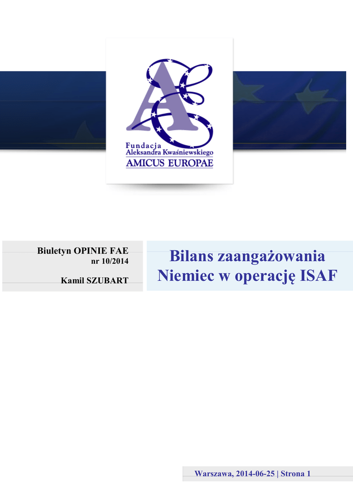 Biuletyn OPINIE FAE nr 10/2014 Kamil SZUBART Bilans zaangażowania Niemiec w operację ISAF Warszawa, 2014-06-25 | Strona 1 Bilans zaangażowania Niemiec w operację ISAF Biuletyn OPINIE FAE nr 10/2014 Kamil Szubart Udział niemieckich sił zbrojnych w operacjach Enduring Freedom (OEF) i misji ISAF w Afganistanie był najdłuższym konfliktem zbrojnym, w którym wzięli udział niemieccy żołnierze od chwili zakończenia II wojny światowej. Jaki jest bilans tego zaangażowania dla Niemiec i ich sił zbrojnych? Trwająca prawie 13 lat obecność Bundeswehry pod Hindukuszem przyniosła śmierć 54 żołnierzy1, finansowe koszty szacowane na 26 - 47 mld euro2, jak również bezcenne doświadczenie zdobyte na współczesnym polu walki dla 96 tys. niemieckich żołnierzy, który uczestniczyli w kolejnych zmianach niemieckiego kontyngentu 3. Pod wpływem doświadczeń płynących z misji w Afganistanie kontynuowano kolejne etapy reformy Bundeswehry, które dostosowały niemieckie siły zbrojne do obecnych wyzwań, ze szczególnym uwzględnieniem zwalczania zagrożeń asymetrycznych i działań kontr partyzanckich. Afganistan to również synonim sprawdzianu dla niemieckiej opinii publicznej, systemu dowodzenia i kierowania Bundeswehrą oraz mechanizmów demokratycznej kontroli nad siłami zbrojnymi. Trzynaście lat niemieckiej obecności pod Hindukuszem Ataki terrorystyczne na Nowy Jork i Waszyngton 11 września 2001 r. wywołały nie tylko bezprecedensowe straty ludzkie i materialne, ale również solidarność i współczucie całej społeczności międzynarodowej. Administracja prezydenta George W. Busha otrzymała kondolencyjne noty dyplomatyczne ze 197 państw, z których 59 zaoferowało bezpośrednią pomoc w poszukiwaniu ocalałych na miejscu tragedii, natomiast 44 zdeklarowały pomoc w prowadzonym śledztwie wobec inicjatorów ataku. Wśród państw oferujących zarówno pomoc ratowniczą, jak również w prowadzonym śledztwie i zwalczaniu terroryzmu, znalazły się Niemiec. 12 września 2001 r. ówczesny kanclerz RFN, Gerhard Schröder, w nadzwyczajnym wystąpieniu na forum Bundestagu podkreślił solidarność Niemiec z narodem amerykańskim, jak również zdeklarował pełną pomoc w ściganiu i ujęciu Stan na 29.05.2014. Za: ISAF Casualty Report, http://www.isaf.nato.int/article/casualty-report/index.php (19.05.2014). 2 Afghanistan-Einsatz: Jedes weitere Jahr kostet Deutschland drei Milliarden Euro, http://www.diw.de/sixcms/detail.php?id=diw_01.c.356843.de (19.05.2014). 3 Zehn Jahre deutscher Afghanistan-Einsatz in Zahlen, http://www.rp-online.de/politik/deutschland/zehn-jahredeutscher-afghanistan-einsatz-in-zahlen-bid-1.2832336 (19.05.2014). 1 Warszawa, 2014-06-25 | Strona 2 Bilans zaangażowania Niemiec w operację ISAF Biuletyn OPINIE FAE nr 10/2014 Kamil Szubart wszystkich osób odpowiedzialnych za zaplanowanie i przeprowadzenie zamachów4. Strona niemiecka poparła również wniosek o uruchomienie Art. 5 Traktatu Waszyngtońskiego, który został przedstawiony na nadzwyczajnym posiedzeniu Rady Północnoatlantyckiej w Brukseli5. Na fali poparcia dla amerykańskiej kampanii antyterrorystycznej rząd G. Schroedera zdecydował się poprzeć amerykańskie uderzenie na Afganistan, które zostało usankcjonowane zgodą Bundestagu na udział Bundeswehry w operacjach OEF i ISAF, 16 listopada i 22 grudnia 2001 r. Wśród prominentnych polityków największych frakcji w Bundestagu panowała jednomyślność, że początek amerykańskiego uderzenia na reżim talibów wspierających Al-Kaidę jest w pełni uzasadniony w świetle prawa międzynarodowego, zgodnie z art. 51 Karty Narodów Zjednoczonych, przyznającym prawo do obrony indywidualnej lub w ramach członkostwa w sojuszach polityczno-wojskowych. Specyfika Afganistanu jako państwa o braku scentralizowanego ośrodka władzy, mozaice etnicznej, silnych wpływach zewnętrznych i nieregularnych oddziałach przeciwnika, spowodowała, że w pierwszej fazie konfliktu ciężar walk wzięły na siebie siły specjalne państw koalicji antyterrorystycznej. Wśród nich znaleźli się również niemieccy komandosi z Kommando Spezialkräfte (KSK). Dla KSK był to pierwszy poważny sprawdzian z prowadzenia działań samodzielnie lub z sojusznikami na realnym polu walki. W porównaniu z analogicznymi siłami specjalnymi zaangażowanymi w OEF, KSK było dość młodą jednostką. Powstała na przełomie 1995/96 r. i do tej pory uczestniczyła wyłącznie w działaniach na Bałkanach w składzie niemieckiego komponentu sił SFOR i KFOR, gdzie dokonała kilku udanych zatrzymań bośniackich Serbów oskarżonych o zbrodnie wojenne. W pierwszej kolejności 100 operatorów KSK zostało przerzuconych do Omanu, gdzie po okresie aklimatyzacji i intensywnych ćwiczeń z amerykańskimi i brytyjskimi siłami specjalnymi trafili do Afganistanu. Ze względu na ograniczenia kadrowe (cała jednostka wraz z personelem medycznym i logistycznym liczyła ok. 1100 ludzi, w tym cztery kompanie bojowe), we wrześniu 2001 r. jednostka została wycofana z misji KFOR na Bałkanach, aby całkowicie skupić się na swoich działaniach w Afganistanie. Regierungserklärung des Bundeskanzlers Gerhard Schröder zu den Anschlägen in den Vereinigten Staaten von Amerika vom 12. September 2001, http://www.documentarchiv.de/brd/2001/rede_schroeder_terror-usa.html (19.05.2014). 5 NATO reaffirms Treaty commitments in dealing with terrorist attacks against the US, http://www.nato.int/docu/update/2001/0910/e0912a.htm (19.05.2014). 4 Warszawa, 2014-06-25 | Strona 3 Bilans zaangażowania Niemiec w operację ISAF Biuletyn OPINIE FAE nr 10/2014 Kamil Szubart Analizując działania KSK w Afganistanie należy zwrócić szczególną uwagę na fakt, że w grudnia 2001 r. kontyngent niemieckich sił specjalnych został podporządkowany bezpośrednio dowództwu Amerykanów (ze 3rd Special Forces Group, US Army Special Forces w Omanie), odpowiedzialnemu za operacje specjalne na terytorium ca