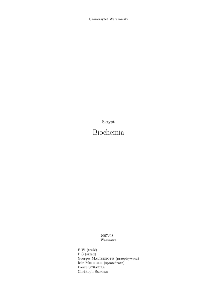 Uniwersytet Warszawski Skrypt Biochemia 2007/08 Warszawa E W (treść) P S (skład) Georges Maltsiniotis (przepisywacz) Ieke Moerdijk (sprawdzacz) Pierre Schapira Christoph Sorger © 2008 PS All rights reserved Wszelkie prawa zastrzeżone Do momentu ustalenia jakie prawa do wykładu rości wykładowca, twórca notatek i osoby przepisujące poszczególne wykłady trudno ustalać jaką treść powinna nieść ta strona. Najlepiej byłoby gdyby skrypt był wydany jako skrypt „otwarty”, tj. kopiowanie, nanoszenie poprawek i używanie go w celach prywatnych było dozwolone pod warunkiem zachowania informacji o naniesionych poprawkach. Skrypt należy kopiować w całości (z wyłączeniem oczywisych przypadków). W przypadku używania w celach publicznych uważam, że wskazane byłoby wymaganie poinformowania o tym fakcie kogoś z twórców skryptu, który miałby prawo odmówić w przypadku uzasadnionym (przypadek uzasadniony: drukowanie skryptu na papierze toaletowym). Za niedopuszczalną uznałbym jednak odmowę użycia skryptu przez kogokolwiek w rozsądnych celach dydakycznych.. Powyższe nie jest napisane językiem prawniczym, jednak proszę podchodzić do tego z rozsądkiem. Wydrukowane najprawdopodobniej przez Ciebie. Kontakt: [email protected] Wyklad Wyklad Wyklad Wyklad Wyklad Wyklad Wyklad Wyklad Wyklad Wyklad Wyklad Wyklad Wyklad Wyklad Wyklad pierwszy: drugi: trzeci: czwarty: piąty: szósty: siódmy: ósmy: dziewiąty: dziesiąty: jedenasty: dwunasty: trzynasty czternasty piętnasty NN NN NN NN MK NN NN NN PR NN EW NN MK NN NN Pierwsza wersja, bez treści: Druga wersja, wykład pierwszy wersja beta Trzecia wersja, wstawione wykłady 1-7 14 lutego 2008 23 lutego 2008 7 marca 2008 Wszystkie rysunki użyte w skrypcie są własnością publiczną. (z zastrzeżeniem fragmentów skryptu będącego w obróbce, mogą tam przez przypadek pojawić się rysunki chronione prawem autorskim) Podziekowania Człek szlachetny prawdziwie po omacku odnajdzie drogę swą szczęśliwie J. W. Goethe „Faust” Wszystkim serdecznie dziękujemy. A w szczególności autorom podręczników[1, 2, 3] – patrz bibliografia. A teraz dużo tekstu żeby zobaczyć co stanie się jeśli przejdziemy na drugą stronę. Numerowanie powinno być poprawne przy użyciu małych cyfr rzymskich. A AA AA AA AA AA AA AA AA AA AA AA AA AA AA AA AA AA AA AA AA AA AA AA AA AA AA AA AA AA AA AA AA AA AA AA AA ii A A A A A A A A A A A A A A A A A A A A A A A A A A A A A A A A A A A Biochemia A A A A A A A A A A A A A A A A A A A A A A A A A A A A A A A A A A Spis treści Spis treści iii 1 Wstęp 1.1 Istota biochemii: . . . . . . . . . . . 1.2 Krótka historia biochemii . . . . . . 1.3 Działy biochemii . . . . . . . . . . . 1.4 Ogólna charakterystyka metabolizmu 1.5 Termodynamika reakcji chemicznych 1.6 Związki wysokoenergetyczne . . . . . . . . . . . . . . . . . . . . . . . . . . . . . . . . . . . . . . . . . . . . . . . . . . . . . . . . . . . . . . . . . . . . . . . . . . . . . . . . . . . . . . . . . . . . . . . . . . . . . . . . . . . . . . . . . . . . . . . . . . . . . . . . . . . . . . . . . . . . . . . . . . . . . . . . . . . . . . . . . . . . . . . . . . . . . . . . . . . . . . . . . 2 Cos 1 1 1 2 3 3 5 9 3 Jakis 3 21 4 4 31 5 Białka 45 6 Katabolizm 6.1 Proces kataboliczny . . . . . . . . 6.2 Procesy anaboliczne . . . . . . . . 6.3 Glukoneogeneza . . . . . . . . . . . 6.4 Szlak glukoneogenezy . . . . . . . . 6.5 Cykl Corich . . . . . . . . . . . . . 6.6 Koszt energetyczny . . . . . . . . . 6.7 Nukleozudocukry, nukleotydocukry . . . . . . . . . . . . . . . . . . . . . . . . . . . . . . . . . . . . . . . . . . . . . . . . . . . . . . . . . . . . . . . . . . . . . . . . . . . . . . . . . . . . . . . . . . . . . . . . . . . . . . . . . . . . . . . . . . . . . . . . . . . . . . . . . . . . . . . . . . . . . . . . . . . . . . . . . . . . . . . . . . . . . . . . . . . . . . . . . . . . . . . . . . . . . . . . . . . . . . . . . . . . . . . . . . . . . . . . . 59 59 59 60 63 65 65 66 7 Biosynteza 73 Bibliografia 87 Wykład 1 Wstęp Od lat dziesięciu za nos wodzę po krętej poszukiwań drodze swych uczniów głupkowatą sforę J. W. Goethe „Faust” 1.1 Istota biochemii: Biochemia – nauka o składnikach chemicznych organizmów żywych i procesach, którym podlegają. Zajmuje się budową organizmów i ich funkcjami w kategoriach molekularnych. Podstawowe pytania, na jakie stara się odpowiedzieć są związane z następującymi zagadnieniami: struktura chemiczna składników materii ożywionej ich wzajemne oddziaływanie (np. w obrębie błon biologicznych) pozyskiwanie energii niezbędnej do podtrzymania procesów życiowych komunikowanie się komórki z otoczeniem – z innymi komórkami, organizmami i otoczeniem zewnętrznym procesy chemiczne towarzyszące wzrostowi, reprodukcji, starzeniu się i śmierci komórki integracja i regulacja procesów biochemicznych 1.2 Krótka historia biochemii Początki biochemii sięgają końca XVIII w. Dwoma głównymi jej korzeniami były: 1) powstająca w tym czasie chemia organiczna; 2) rozwijająca się w związku z rozwojem medycyny od XVII w. tzw. chemia fizjologiczna. Chemia organiczna W tym czasie chemia organiczna utożsamiana była z chemią związków naturalnych. Dopiero w 1828 r. niemiecki chemik F. Wohler zsyntetyzował pierwszą substancję organiczną: mocznik (z amoniaku i cyjanku ołowiu). NH4 NCO −−→ H2 N−CO−NH2 Nadal uważano jednak, że w komórkach żywych związki organiczne wytwarzane są przy udziale specyficznej „siły życiowej”. Dopiero w 1897 r. H. I E. Wichnerowie wykazali, że nie tylko drożdże są w stanie przeprowadzać fermentacje alkoholową, ale może zachodzić ona także w bezkomórkowych ekstraktach z drożdży (zawierających enzymy odpowiedzialne za ten proces). 2 Biochemia Pierwszy enzym wyodrębniony został w 1926 r. przez Sanberga, który otrzymał krystaliczną ureazę (enzym rozszczepiający mocznik do amoniaku i C