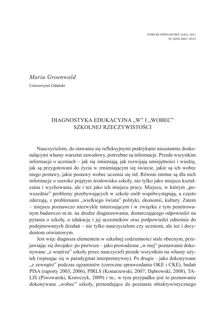 Diagnostyka edukacyjna „w” i „wobec”szkolnej rzeczywistości