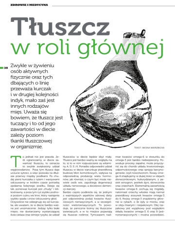 ZDROWIE I MEDYCYNA Tłuszcz w roli głównej 38 Zwykle w żywieniu osób aktywnych fizycznie oraz tych dbających o linię przeważa kurczak i w drugiej kolejności indyk, mało zaś jest innych rodzajów mięs. Uważa się bowiem, że tłuszcz jest tuczący i to od jego zawartości w diecie zależy poziom tkanki tłuszczowej w organizmie. T o jednak nie jest prawda. Jeśli ograniczamy w diecie zawartość tłuszczu, to oznacza to zwykle zwiększony udział węglowodanów. Poza tym tłuszcz daje uczucie sytości, a więc pozwala na dłuższe przerwy między posiłkami. Po chudej piersi kurczaka z ryżem i warzywami odczuwamy w krótkim czasie potrzebę zjedzenia kolejnego posiłku. Dzieje się tak, ponieważ kurczak jest „chudy” i lekkostrawny, a poza tym ryż szybko podnosi poziom cukru we krwi, który następnie szybko spada i znów odczuwamy głód. Oczywiście nie odżegnuję się od kurczaka, ale uważam, że w diecie bardzo ważne jest urozmaicenie. Jedząc tylko białe mięso, nie dostarczamy wystarczającej ilości żelaza oraz istnieje ryzyko, że udział TEKST: IWONA WIERZBICKA tłuszczów w diecie będzie zbyt mały. Tłuszcz jest bardzo ważny ze względu na to, iż to w nim rozpuszczane są witaminy A, D, E i K. Ponadto odpowiedni udział tłuszczu w diecie warunkuje prawidłową budowę błon komórkowych, wpływa na odpowiednią produkcję wielu hormonów, jak również, o czym być może niewiele osób wie, zapobiega degeneracji układu nerwowego, a docelowo demencji starczej. Bardzo często podkreśla się, że jednym z ważniejszych aspektów zdrowej diety jest odpowiednia podaż kwasów tłuszczowych nienasyconych, a w szczególności wielonienasyconych. To powoduje, że panicznie boimy się tłuszczów zwierzęcych, a w to miejsce pojawiają się tłuszcze roślinne. Tymczasem nad- miar kwasów omega-6 w stosunku do omega-3 jest bardzo niebezpieczny. Powoduje procesy zapalne, może przyczynić się do chorób układu krwionośnego, odpornościowego oraz sprzyja karcynogenezie, czyli nowotworom. Kwasy omega-6 znajdujemy w dużej ilości w olejach słonecznikowym, kukurydzianym, z pestek winogron, pestkek dyni, słonecznika oraz orzechach. Ekstremalną zawartością kwasów omega-6 cechują się migdały, natomiast orzechy włoskie mają niemal prawidłowy stosunek kwasów omega-3 do 6. Kwasy omega-3 znajdziemy głównie w rybach, o ile żyły w morzu, oraz w oleju lnianym i rzepakowym. Olej rzepakowy jest wyjątkowy pod względem składu kwasów omega-3, 6 oraz 9 (jednonienasyconych) i można powiedzieć, że jest niemal idealny. Niestety, można mieć duże zastrzeżenia co do procesu wytłaczania, w którym używa się chemii. Bardzo ważne jest, by olej ten spożywać w postaci surowej i niepodgrzanej, jak również kupować go nierafinowany i nieoczyszczony. Wiele osób zamiast oleju rzepakowego oraz tłuszczów zwierzęcych spożywa oliwę z oliwek. Jest to dobre rozwiązanie, ale tym sposobem w naszej diecie przeważają tłuszcze jednonienasycone. Ponadto, co jest istotne, a o czym wiele osób nie wie, to mięso nie składa się jedynie z tłuszczów nasyconych, ale również z jedno- i wielonienasyconych. W wieprzowinie połowa jej tłuszczu to kwasy omega-9, czyli takie same jak w oliwie z oliwek. Ponadto znajdziemy tam w niewielkiej ilości kwasy omega-3 i 6. Przy zawartości tłuszczu 10 g na 100 g mięsa (przykład schab z kością) około 6 g to tłuszcze nienasycone. Oczywiście bardzo istotne znaczenie ma to, w jaki sposób karmione jest zwierzę. Najbardziej wartościowe byłoby mięso przeżuwaczy (krowy, owce), które pasły się na łąkach zielonych – byłoby dużo bardziej zasobne w kwasy omega-3 i 6 oraz ważny kwas CLA o właściwościach antynowotworowych. Jednak z powodów finansowych wielu osób nie stać na dobrej jakości mięso. Polędwica wołowa kosztuje około 90 zł/kg, a mięso z łąk zielonych potrafi kosztować nawet 200 zł/kg. Dla porównania polędwica wieprzowa kosztuje około 30 zł/kg. Porównując zawartość tłuszczu i białka w wieprzowinie i wołowinie – są podobne. Schab bez kości: 24 g białka, 3,5 g tłuszczu, polędwica wieprzowa: 21 g białka, 2 g tłuszczu, polędwica wołowa: 20 g białka, 3,5 g tłuszczu. Porównując zawartość żelaza – wieprzowina ma go trzy razy tyle co białe mięso i o połowę mniej od wołowiny. Nie widzę powodów, dla których wieprzowina jest uznawana za mięso gorszej jakości. Ma podobną zawartość tłuszczu co wołowina, podobną ilość żelaza i jest od niej trzy razy tańsza. SEZONOWOŚĆ Nadchodzi zima, niestety coraz mniej warzyw dostępnych jest w marketach i na targach, a te, które dostępne są cały rok – pochodzą ze szklarni, przez co niemal wszystkie smakują podobnie. Kilka rad, jak przeżyć zimę, a mieć pełnowartościową dietę. szone, a nie kwaszone. To bardzo istotna różnica. Kiszonki zawierają korzystny kwas mlekowy, który wspomaga naszą florę bakteryjną, ułatwia trawienie oraz wspomaga odporność. Ponadto kiszonki bogate są w witaminę C oraz bardzo ważne witaminy K i B, których ilość się zwiększa pod wpływem kiszenia. Witaminy z grupy B usprawniają układ nerwowy, a witamina K m.in. wpływa na gospodarkę wapniową organizmu. Niestety, w handlu znajdujemy wiele oszukanych produktów, dlatego zachęcam do samodzielnego kiszenia, które jest proste i szybkie, a w internecie można znaleźć przeróżne przepisy. Kwaszenie jest procesem fermentacji drożdżowej, w wyniku której powstaje kwas octowy. W takich produktach brak dobroczynnych bakterii kwasu mlekowego. Ŕ.SPĸPOLJŊXIBOEMVEPTUÕQOFTÁDBþZ rok i można znaleźć praktycznie wszystko. Mrożenie powoduje zachowanie niemal wszystkich witamin i minerałów. Stratom podlegają pewne ilości witaminy C, co jest spowodowane transportem i obróbką tuż przed mrożeniem. Mrożone warzywa zimową porą są zdecydowanie lepsze od „sztucznej suplementacji”, dlatego jako di
