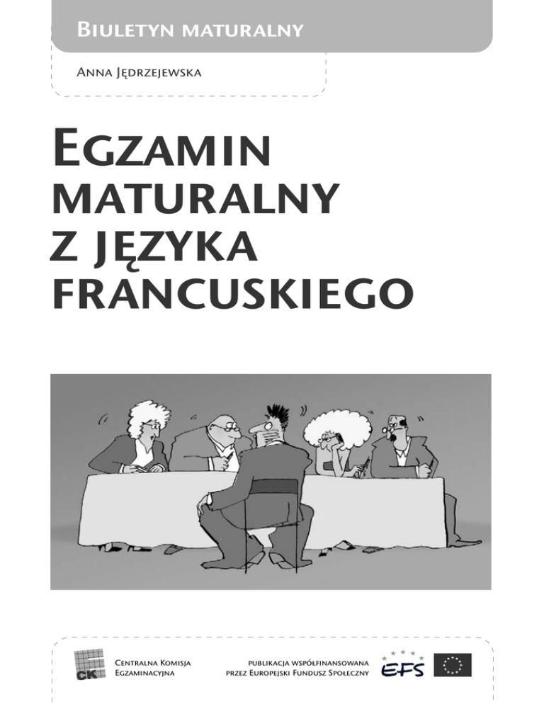 Biuletyn maturalny Anna Jędrzejewska Egzamin maturalny z języka francuskiego Centralna Komisja Egzaminacyjna publikacja współfinansowana przez Europejski Fundusz Społeczny Autor broszury: Anna Jędrzejewska Autor opracowania graficznego: Maja Chmura ([email protected]) Redaktor merytoryczny cyklu: Joanna Dziedzic Redaktor z ramienia CKE: Lucyna Grabowska Redaktor językowy: Renata Frątczak Redaktor techniczny: Stefan Drobner Stan prawny na dzień 1 grudnia 2005 r. Wydawca: Centralna Komisja Egzaminacyjna Warszawa 2006 ISBN 83-7400-213-1 Łamanie tekstu: Trzecie Oko S.C. ([email protected]) Spis treści: I. Wstęp . . . . . . . . . . . . . . . . . . . . . . . . . . . . . . . . . . . . . . . . . . . . . . . . 4 II. Egzamin ustny – poziom podstawowy . . . . . . . . . . . . . . . . . . . . . . . 5 1. Jak się przygotować . . . . . . . . . . . . . . . . . . . . . . . . . . . . . . . . . . . . . . . . . . . . . . 5 2. O czym należy pamiętać . . . . . . . . . . . . . . . . . . . . . . . . . . . . . . . . . . . . . . . . . . 5 3. Jak należy zdawać . . . . . . . . . . . . . . . . . . . . . . . . . . . . . . . . . . . . . . . . . . . . . . . . 6 4. Co może być w zestawach na poziomie podstawowym . . . . . . . . . . . . . . . . . . 7 III. Egzamin ustny – poziom rozszerzony . . . . . . . . . . . . . . . . . . . . . . . 13 1. Jak się przygotować . . . . . . . . . . . . . . . . . . . . . . . . . . . . . . . . . . . . . . . . . . . . . . 13 2. Co może być w zestawach na poziomie rozszerzonym . . . . . . . . . . . . . . . . . . . 14 IV. Egzamin pisemny – poziom podstawowy . . . . . . . . . . . . . . . . . . . . . . 20 1. Krótka forma użytkowa . . . . . . . . . . . . . . . . . . . . . . . . . . . . . . . . . . . . . . . . . . . . 20 2. Dłuższa forma użytkowa . . . . . . . . . . . . . . . . . . . . . . . . . . . . . . . . . . . . . . . . . . 21 V. Egzamin pisemny – poziom rozszerzony . . . . . . . . . . . . . . . . . . . . . . 25 1. Jak do tego podejść . . . . . . . . . . . . . . . . . . . . . . . . . . . . . . . . . . . . . . . . . . . . . . 26 2. Na co zwrócić uwagę . . . . . . . . . . . . . . . . . . . . . . . . . . . . . . . . . . . . . . . . . . . . . 26 3. Rozprawka . . . . . . . . . . . . . . . . . . . . . . . . . . . . . . . . . . . . . . . . . . . . . . . . . . . . . 26 4. Recenzja . . . . . . . . . . . . . . . . . . . . . . . . . . . . . . . . . . . . . . . . . . . . . . . . . . . . . . . 30 5. Opowiadanie . . . . . . . . . . . . . . . . . . . . . . . . . . . . . . . . . . . . . . . . . . . . . . . . . . . 33 6. Opis . . . . . . . . . . . . . . . . . . . . . . . . . . . . . . . . . . . . . . . . . . . . . . . . . . . . . . . . . . 37 Serdecznie dziękuję Konradowi Leszczyńskiemu za nieoceniony wkład w opracowaniu niniejszego biuletynu. A. Jędrzejewska I WSTĘP Drodzy Maturzyści! Podobnie jak wasze koleżanki i koledzy zdający egzamin maturalny w nowej formie w roku 2005, tak zapewne każdy z was zadaje sobie pytanie: „ciekawe jak mi pójdzie?”. Ich doświadczenia i rady powinny bez wątpienia pomóc stawić czoła wyzwaniu, jakie stanie przed wami w maju. Jesteście z pewnością w lepszej sytuacji, bo wasz szlak został przetarty. Wam nie pozostaje nic innego, jak tylko przygotować się solidnie i skorzystać z dobrych rad, a opowieści typu: „Wcale się nie uczyłem... a zdałem” traktować z przymrużeniem oka. Egzamin maturalny, będący jednocześnie przepustką na studia, nie powinien nikogo zadowolić minimalnym sukcesem, lecz osiągnięciem jak najlepszego wyniku. Matura to najważniejszy egzamin, z jakim przyjdzie wam się zmierzyć przed wieloma innymi, które was jeszcze czekają. Zdajecie egzamin z pewnego etapu waszego życia i dlatego w trakcie przygotowania właśnie do matury, należy zdobytą dotychczas wiedzę i umiejętności jak najstaranniej podsumować, poukładać, odświeżyć, by już po maturze, spoglądając na swoje świadectwo maturalne, nie oblać się rumieńcem wstydu. Biuletyn ten jest adresowany do wszystkich tych, którzy za punkt honoru obrali sobie osiągnięcie celu — zdanie jak najlepiej najpiękniejszego z języków — języka francuskiego. Tak jak każdy z was jest inny, tak i posiadana przez was wiedza językowa z pewnością się różni. Niektórzy chwycili bakcyla językowego od razu i już od pierwszych dni nauki rozmiłowali się w nim bezgranicznie, inni stopniowo zgłębiali jego tajniki, a jeszcze inni, którzy uczą się go tylko dwie godziny tygodniowo, też pragną przystąpić do matury. Nauka języka obcego ma tę zaletę, że szybko możemy zdobyć jakże niezbędną w dzisiejszych czasach umiejętność komunikowania się z ludźmi mówiącymi innym językiem niż nasz. Umiejętność ta, nabyta w szkole średniej i pieczołowicie pielęgnowana w dalszych etapach kształcenia językowego, to ogromny skarb, jaki posiadacie i jaki może wam przynieść wiele radości zarówno w przyszłej pracy, podróżach, a często i w życiu osobistym. O skarb ten należy dbać. Nie chodzi o to byś każdego dnia przypominał sobie — „o rany, muszę zrobić francuski”, ale byś mówił sobie „ale dziś fajnych rzeczy się nauczyłem”. Nauka języka obcego jest jak bieg długodystansowca — wymaga rozgrzania mięśni i stopniowego pokonywania coraz dłuższych dystansów. Zaniechanie i odstawienie nauki na później przywrócą cię znów do punktu wyjścia. Dlatego, by uniknąć tych „zakwasów językowych”, staraj się w różny sposób codziennie obcować z językiem w różnej formie. A im częściej będziesz z nim obcował, tym lepszy wynik osiągniesz na mecie „Matura”. 4 II 1 EGZAMIN USTNY — POZIOM PODSTAWOWY Jak się przygotować Do egzaminu ustnego na poziomie podstawowym trwającym 10 minut należy odpowiednio się przygotować. Już od pierwszych dni nauki zdobywasz umiejętności, które z pewnością tu będziesz mógł zaprezentować. Na przygotowanie do odpowiedzi m
