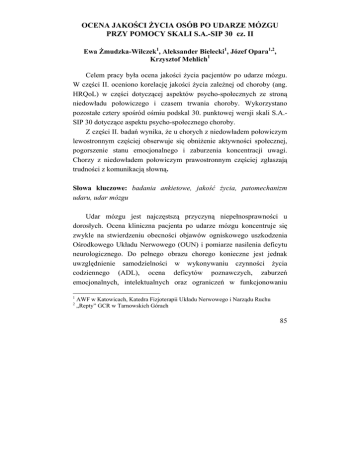 OCENA JAKOŚCI ŻYCIA OSÓB PO UDARZE MÓZGU PRZY