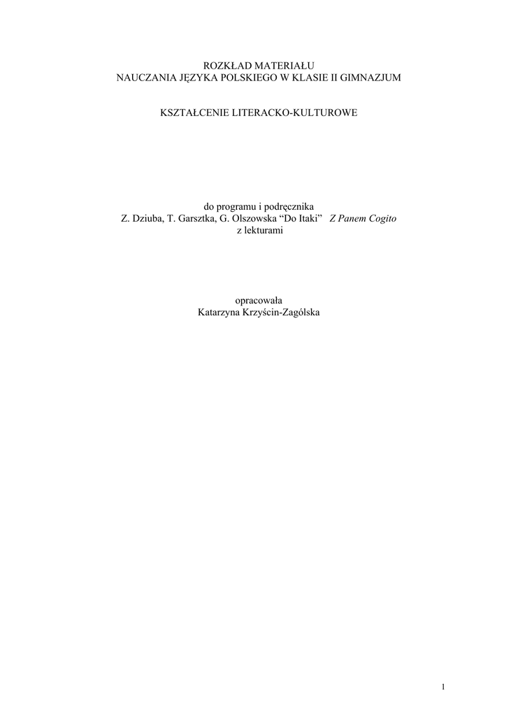 ROZKŁAD MATERIAŁU NAUCZANIA JĘZYKA POLSKIEGO W