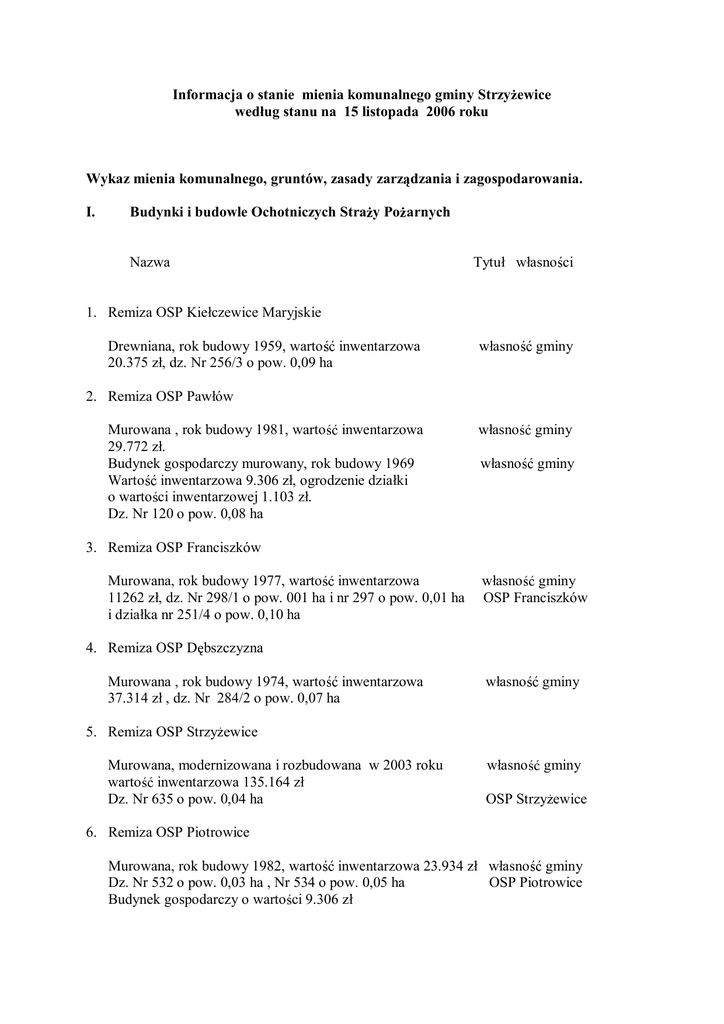 Informacja o stanie mienia komunalnego gminy StrzyŜewice według