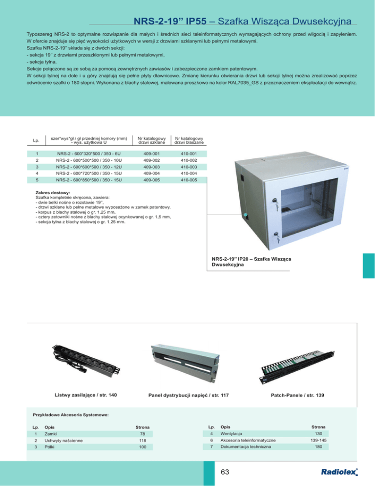 Typoszereg NRS-2 to optymalne rozwiązanie dla maáych i Ğrednich sieci teleinformatycznych wymagających ochrony przed wilgocią i zapyleniem.